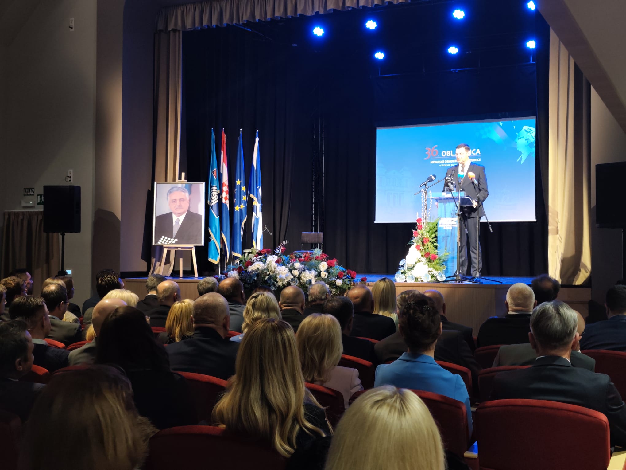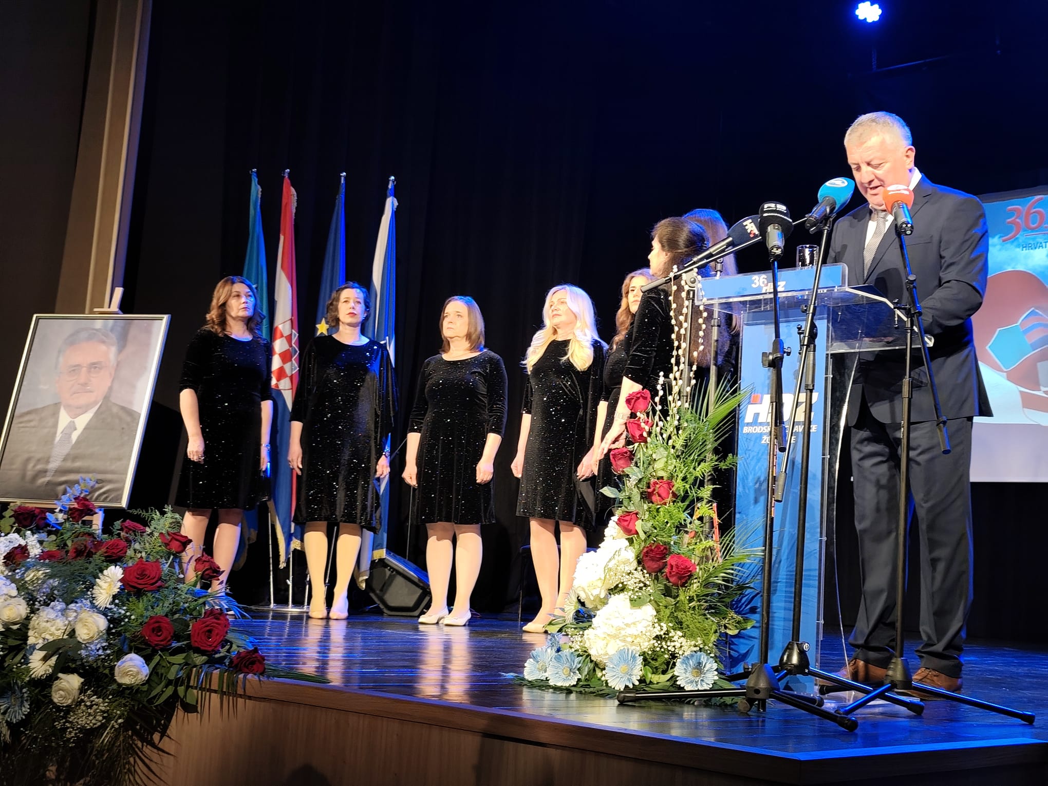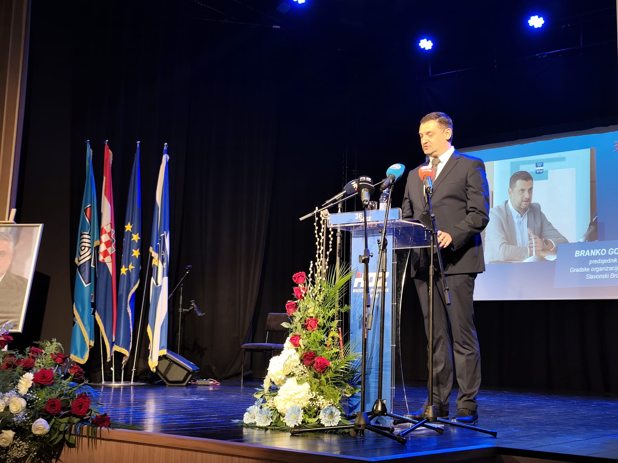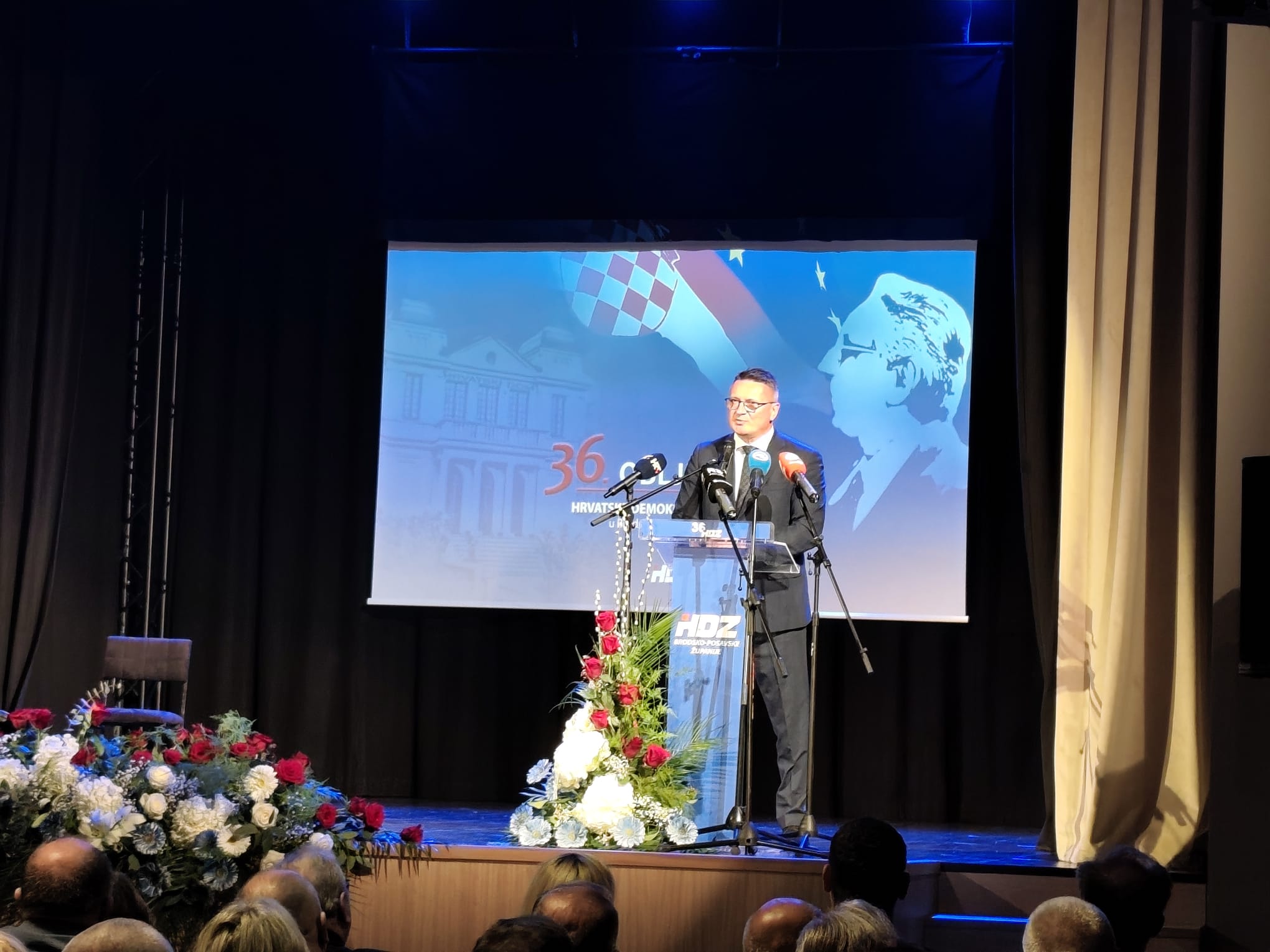 Svečani dio programa u obnovljenom Hrvatskom domu otvorio je Branko Godić, predsjednik Gradskog odbora HDZ-a Slavonski Brod, podsjetivši na simboliku prostora: “Ovo nije samo obljetnica stranke, nego i podsjetnik na ideju koja je oblikovala hrvatsku državu. Hrvatski dom nosi snažnu simboliku i upravo zato je važno da se ovdje okupljamo i podsjećamo na vrijednosti koje su nas dovele do današnje Hrvatske.”