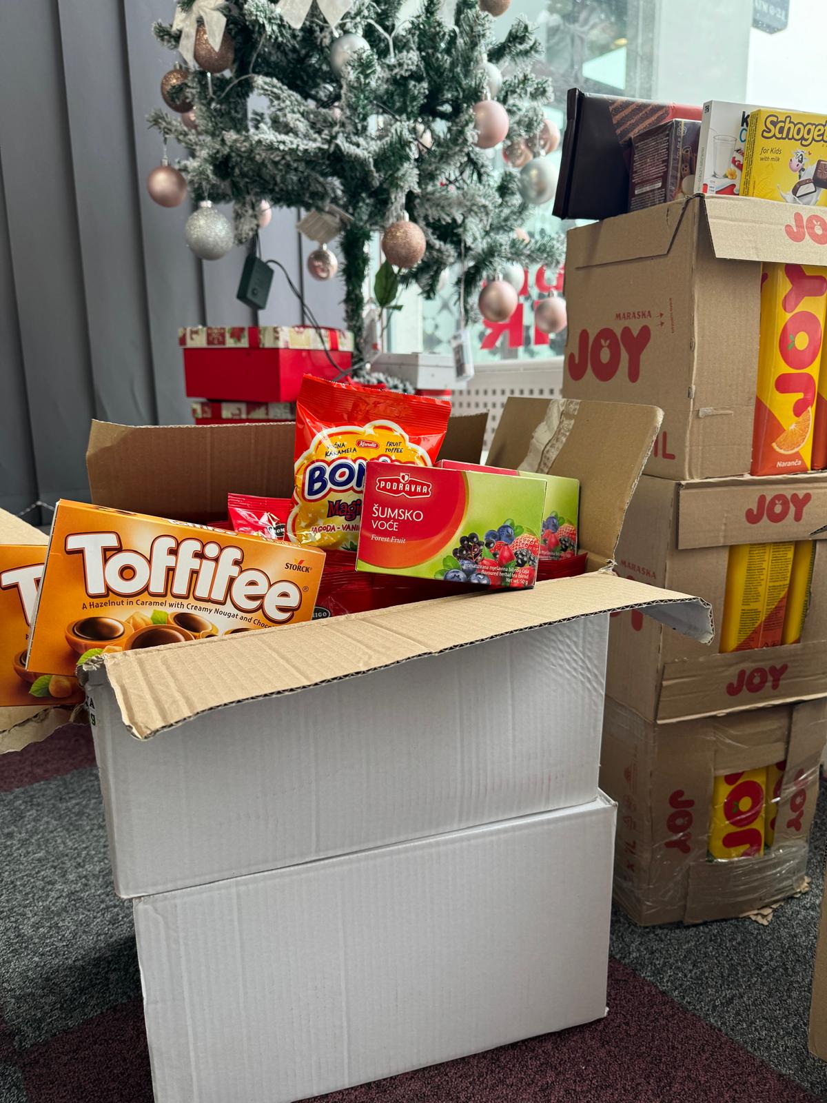 Prikupljanje darova trajalo je od 03.12.2024. do 13.12.2024., nakon čega je započeo pravi posao – pakiranje. Svaki paket bio je pažljivo složen, a sadržavao je kavu, kekse, slastice i jedno lijepo pismo namijenjeno štićenicima s ciljem da im bude pročitano na Božić. Osim slastica i sokova, svaka udomiteljska obitelj dobila je klementine i jabuke. Na kraju, složeno je ukupno 50 paketa.