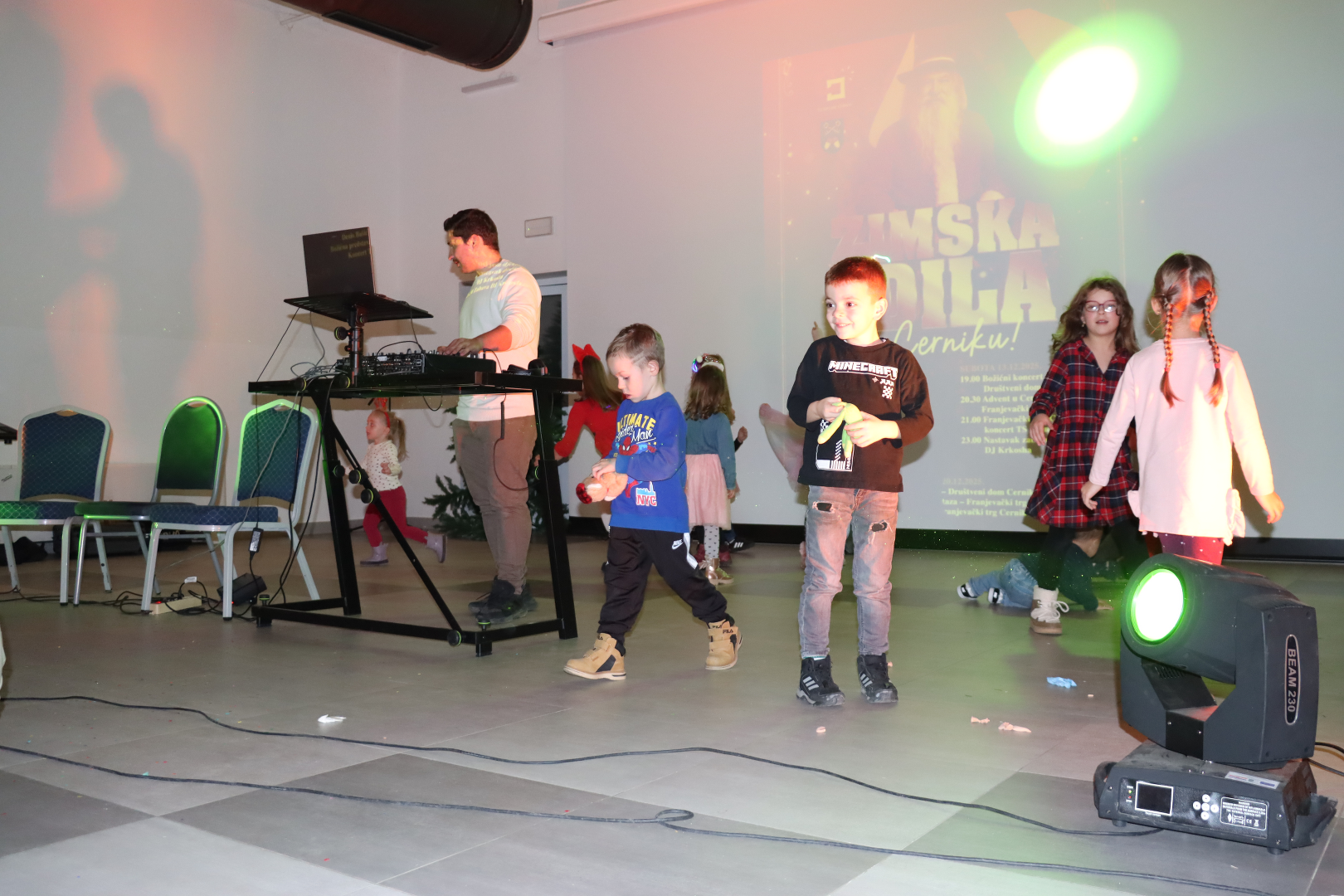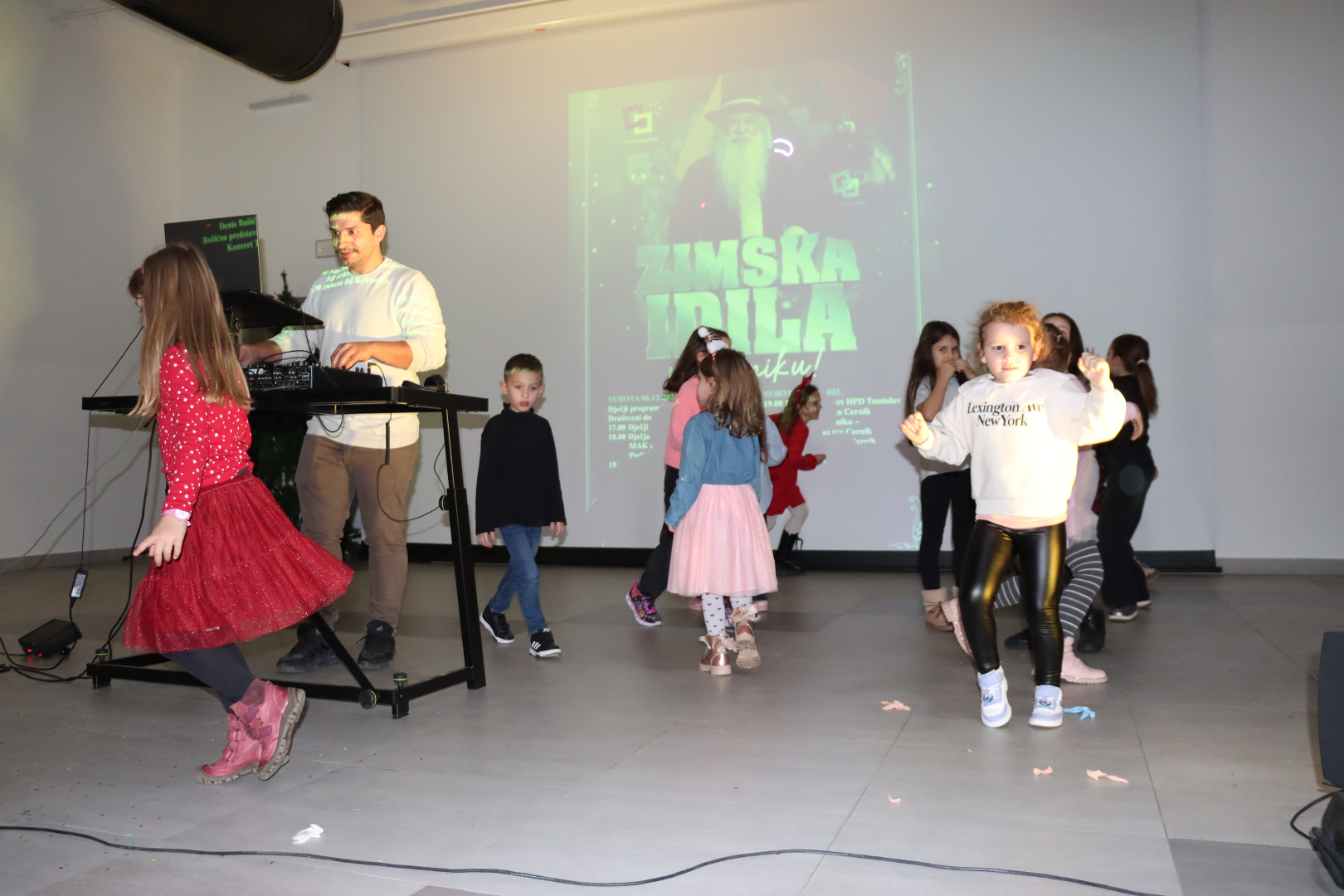 Nakon projekcije filma, djeca i roditelji nastavili su uživati u zabavnom programu – uslijedila je kazališna predstava, zatim svečana podjela poklona Sv. Nikole djeci, a potom i vesela dječja zabava uz DJ Krkoshu. Program se nastavio i za odrasle, čime je prvi dan adventa u Cerniku dobio sveobuhvatni i razigrani karakter.