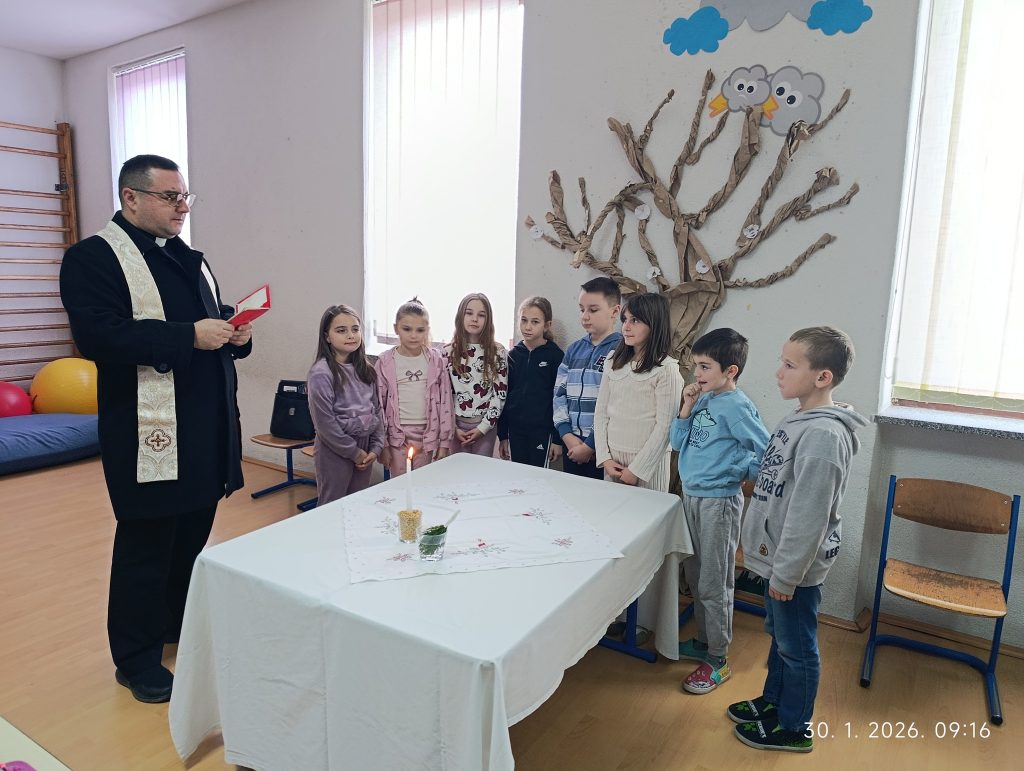 Blagoslovu su prisustvovali učiteljica Dunja Vidošić Rapić, učitelj Milan Radošić te vjeroučiteljica Milena Estera Crnac Krabica, a susret je protekao u toploj i radosnoj atmosferi, ispunjenoj molitvom i lijepim riječima o važnosti zajedništva, dobrote i međusobnog poštovanja. Iz škole zahvaljuju župniku Tihomiru Bilešiću na posjeti, molitvi i ohrabrujućim porukama koje su našoj školskoj zajednici donijele poseban osjećaj blagoslova i duhovne snage.