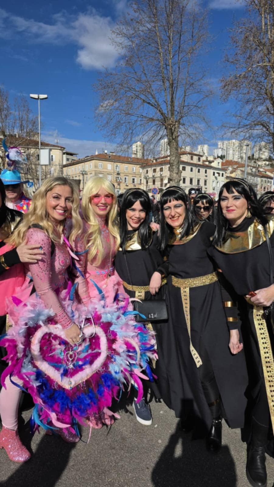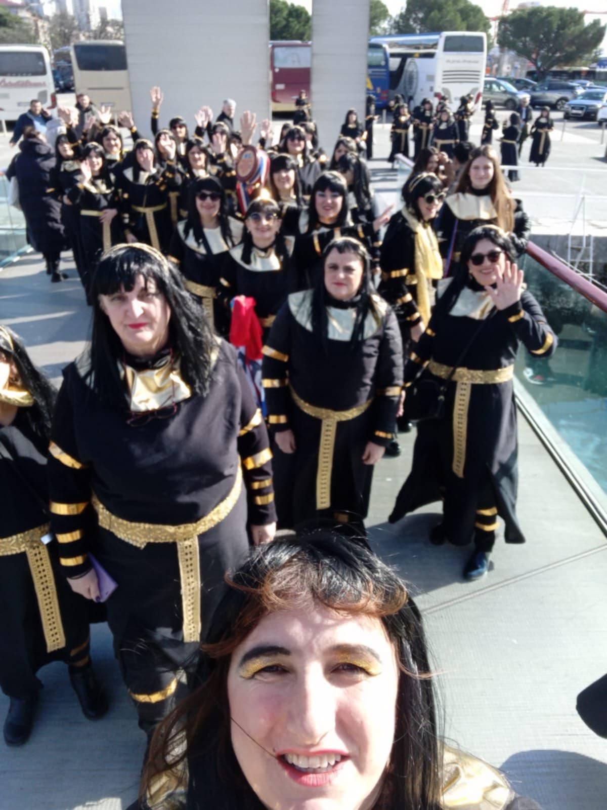 Kad su Frajle navukle svoje egipatske kostime, bilo je jasno kako stižu kraljice karnevala! Zlatne krune, misteriozni osmijesi i ponosni slavonski korak pretvorili su ih u prave vladarice plesne povorke. Iako su bile pod maskama, njihov prepoznatljivi duh nije se mogao sakriti; veselje, jedinstvo i ona posebna energija koja grije i ravnicu i more.