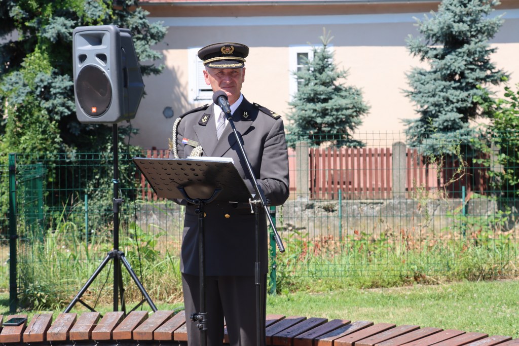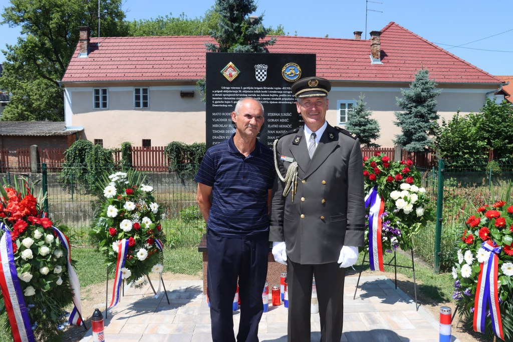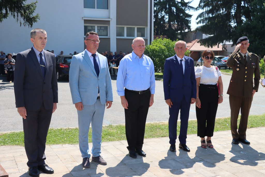 Spomen-ploču zajedno su otkrili župan Brodsko-posavske županije Danijel Marušić i brigadni general u miru Ivan Obrovac.