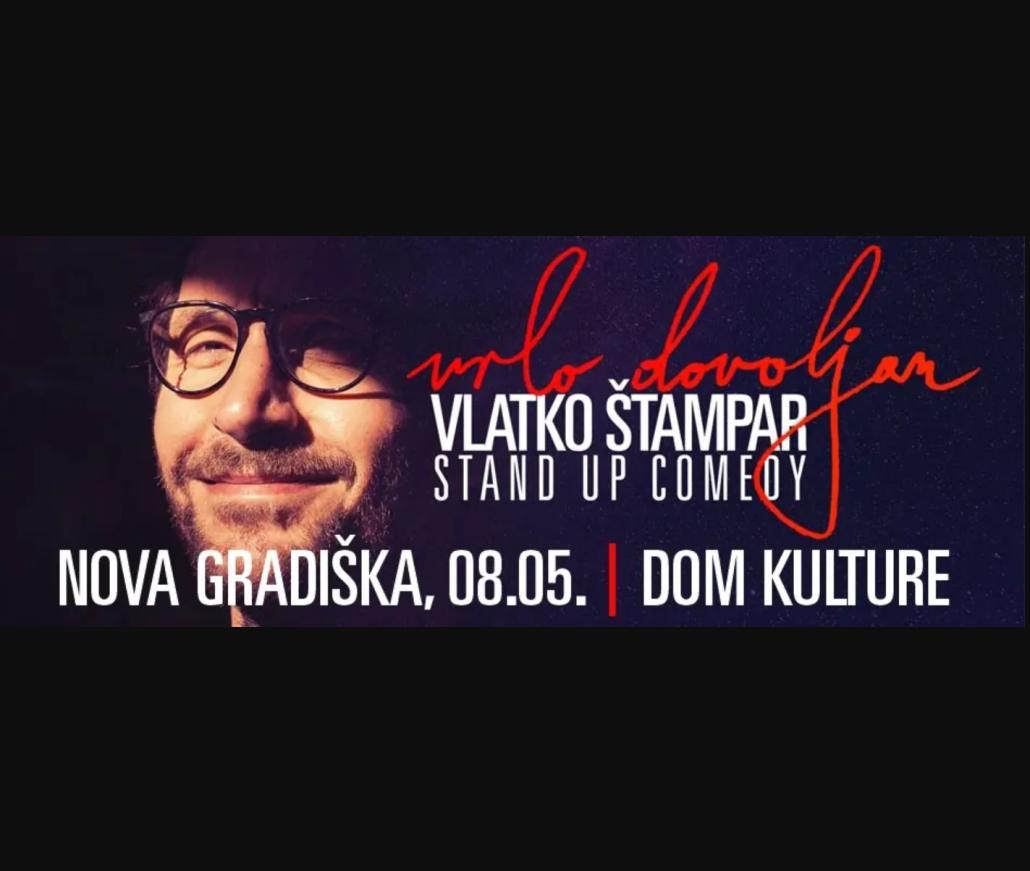 U četvrtak 8. 5. u 20:00 u Domu kulture Nova Gradiška gostuje stand up komičar Vlatko Štampar sa svojim nastupom „Vrlo dovoljan“. Ulaznice se kupuju isključivo online na stranici Eventim: https://www.eventim.hr/hr/ulaznice/vlatko-stampar-vrlo-dovoljan-nova-gradiska-dom-kulture-669446/event.html