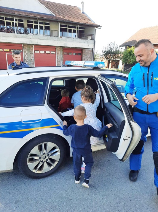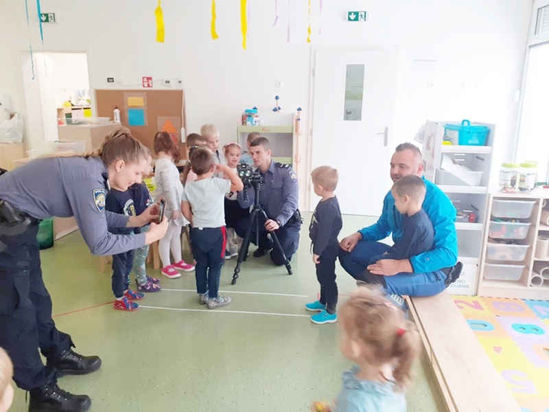 Djecu su zanimali poslovi prometnih policajaca, te su s posebnim oduševljenjem prihvatili „policijski posao“ i obučeni u reflektirajući policijski prsluk sa STOP palicom simulirali radnje policijskih službenika koji u prometu pomažu djeci. Postavljali su brojna pitanja na koja su policijski službenici odgovarali. Mališane je ipak najviše razveselilo razgledavanje službenog vozila i policijske opreme.