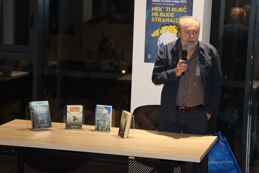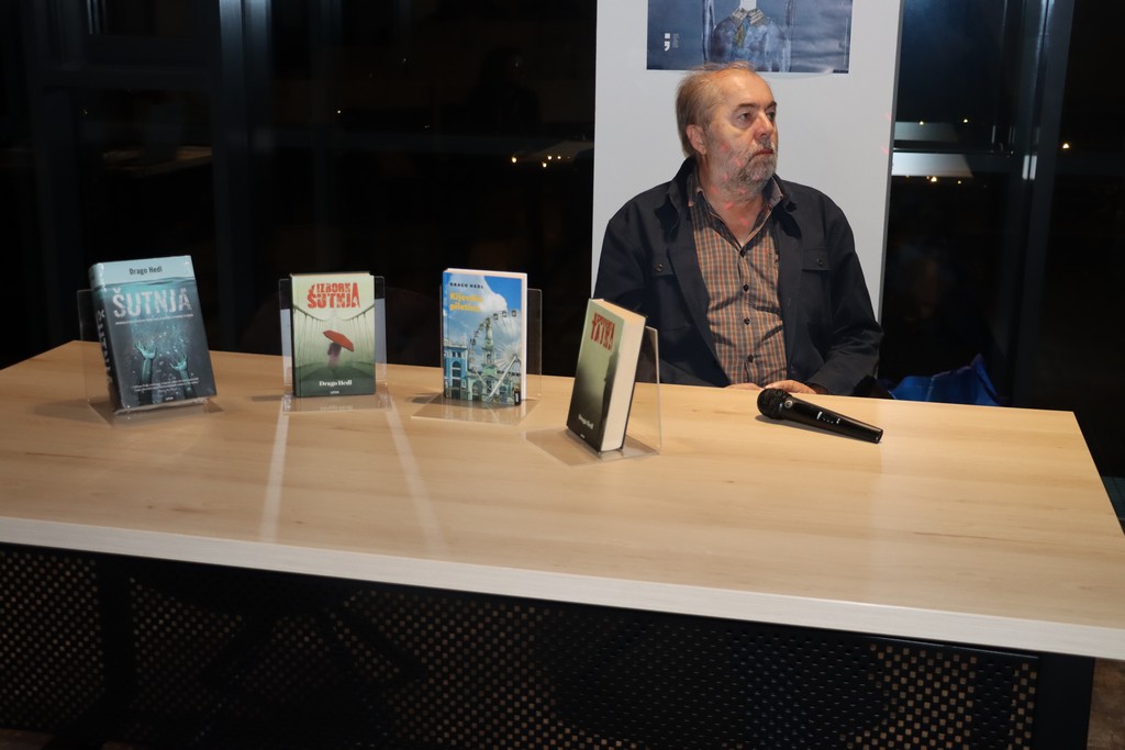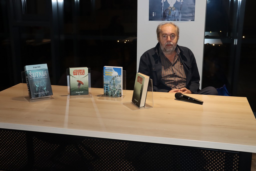 -“Drago mi je da sam ponovno u Novoj Gradiški, grad u koji volim doći, u kojem se dobro osjećam i u koji sam znao doći kao mlad.- Danas smo predstavili knjigu, zapravo sva 3 romana koja su izašla, a naslov romana je Šutnja koji sadrži sve tri knjige: Izborna šutnja, Ispovjedna tajna i Kijevska piletina. To je jedna velika knjiga od 800 stranica i poklopilo se da izlazi istovremeno s početkom druge sezone prije “Šutnja”. To je jedan dosta mučna i univerzalna priča o tome kako prolaze djeca koja su bez zaštite, koja nemaju skrb roditelja, koja žive izvan obitelji i pojasu prepuštena brizi društva koja nije uvijek dovoljna da bi ih usmjerila na put kojim bi trebali poći mladi ljudi iz zdravih obitelji. ” naveo je Drago Hedl