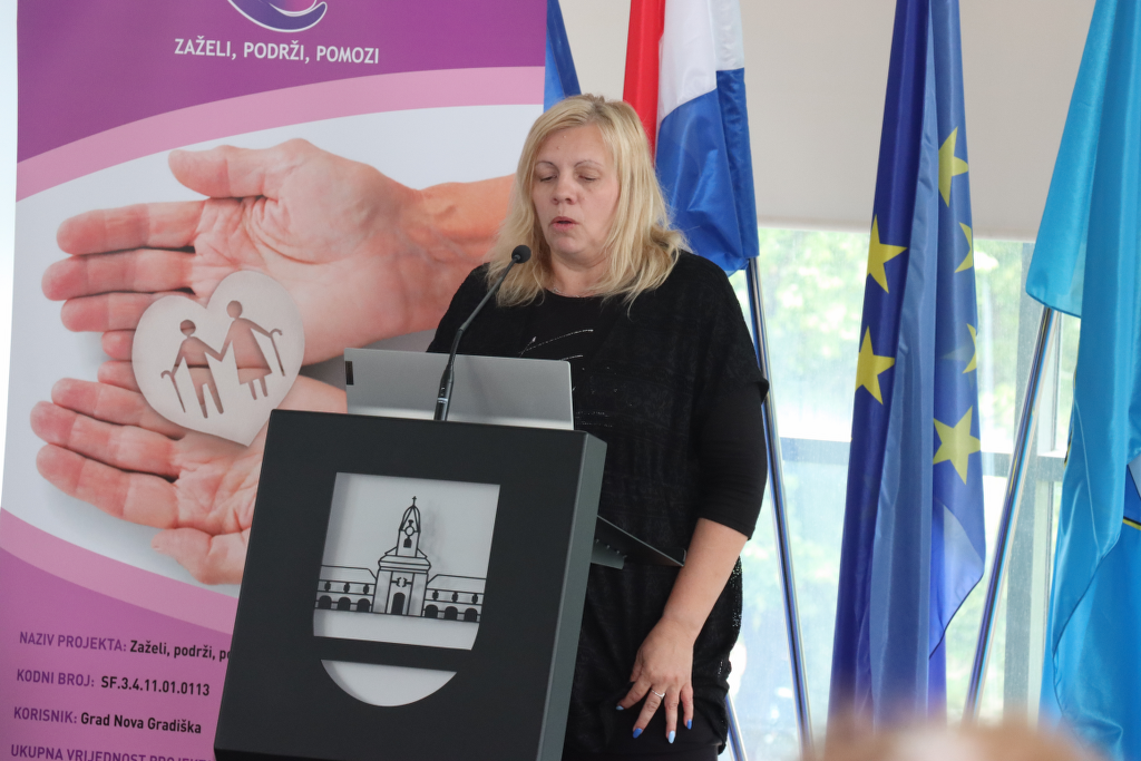 -“Kroz projekt se zaposlilo se 30 žena koje će tijekom 33 mjeseca pružati uslugu potpore i podrške za 180 krajnjih korisnika. Cjelokupno trajanje projekta je 36 mjeseci. Cilj projekta je pružanje usluge potpore i podrške u svakodnevnom životu starijim osobama i osobama s invaliditetom na području grada Nova Gradiška.”