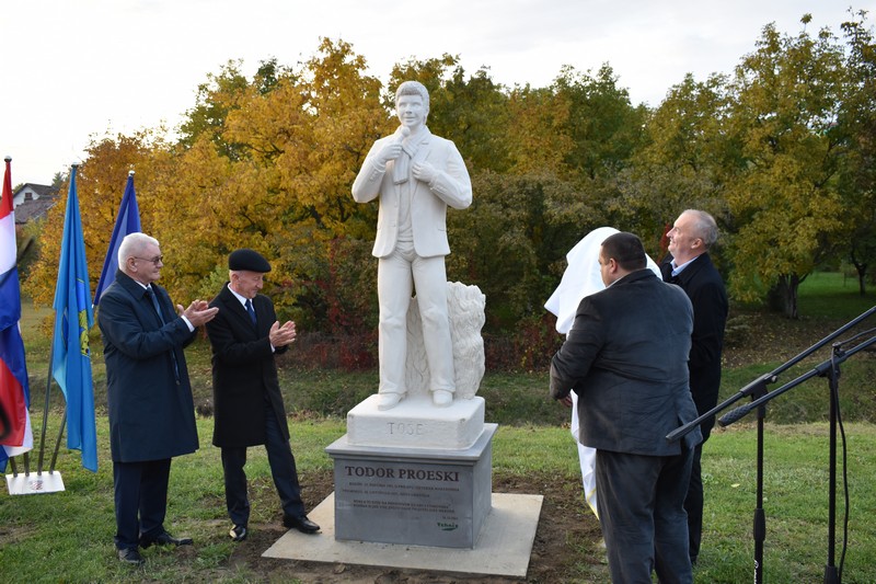 Uz već postojeći spomenik Toši kod novogradiške Elektrotehničke i ekonomske škole, jučer je otkriven još jedan, na šetnici novogradiških zanimljivosti, a otkrili su ga veleposlanik Republike Sjeverne Makedonije njegova ekselencija Milaim Fetai, gradonačelnik Nove Gradiške Vinko Grgić, gradonačelnik Tošinog rodnog Kruševa Tome Hristovski i predsjednik kompanije „Tehnix” Đuro Horvat, tvrtke koja je donirala spomenik Novoj Gradiški.