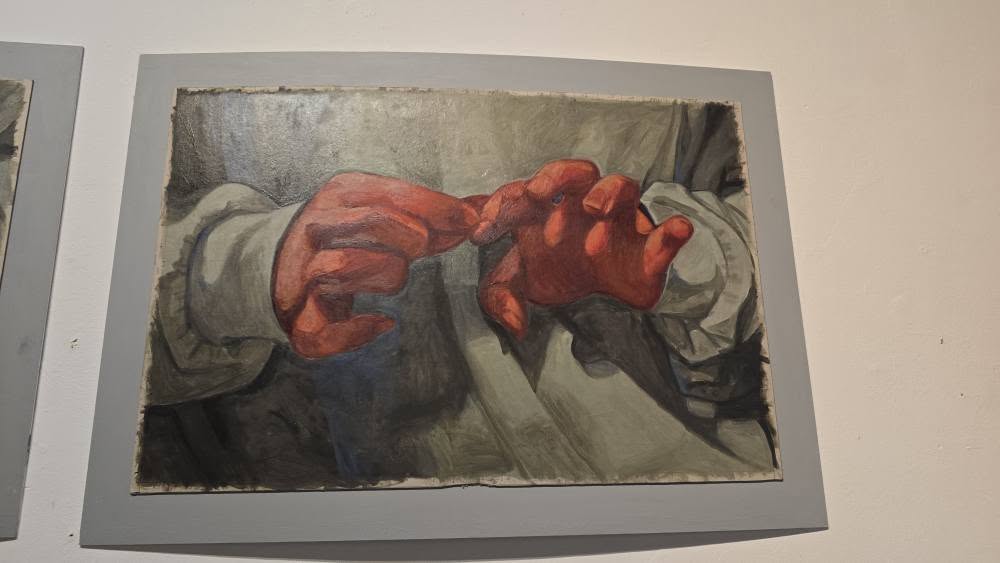 Izložba autora istražuje granice osobne introspekcije i emocionalne ekspresije kroz slikarstvo, otvarajući prostor za promišljanje o fragilnosti ljudskog postojanja. Navedeni radovi kojima je zajednički nazivnik procesuiranje ljudske nutrine, ne ostavljaju nas indiferentnima, već iskrenom i ekspresivnom gestom nude platformu za suočavanje s vlastitim unutarnjim konfliktima i slabostima.“ – napisala je hustosica Helena Puhara.