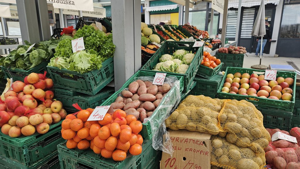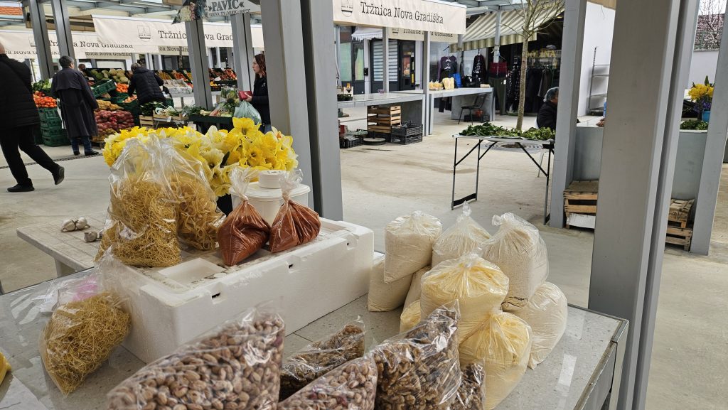 Novogradiška tržnica nudi raznoliku i bogatu ponudu domaćih proizvoda koja iz tjedna u tjedan privlači sve veći broj posjetitelja. Na štandovima se mogu pronaći svježi sir i vrhnje, razne vrste tvrdih sireva, svježa jaja te kvalitetni mesni proizvodi poput slavonske šunke i kulena. Ljubitelji ribe mogu birati između riječne i morske ribe, dok su u ponudi i domaći pekarski proizvodi te pripravci od ljekovitog bilja i kulinarski začini iz domaće radinosti.