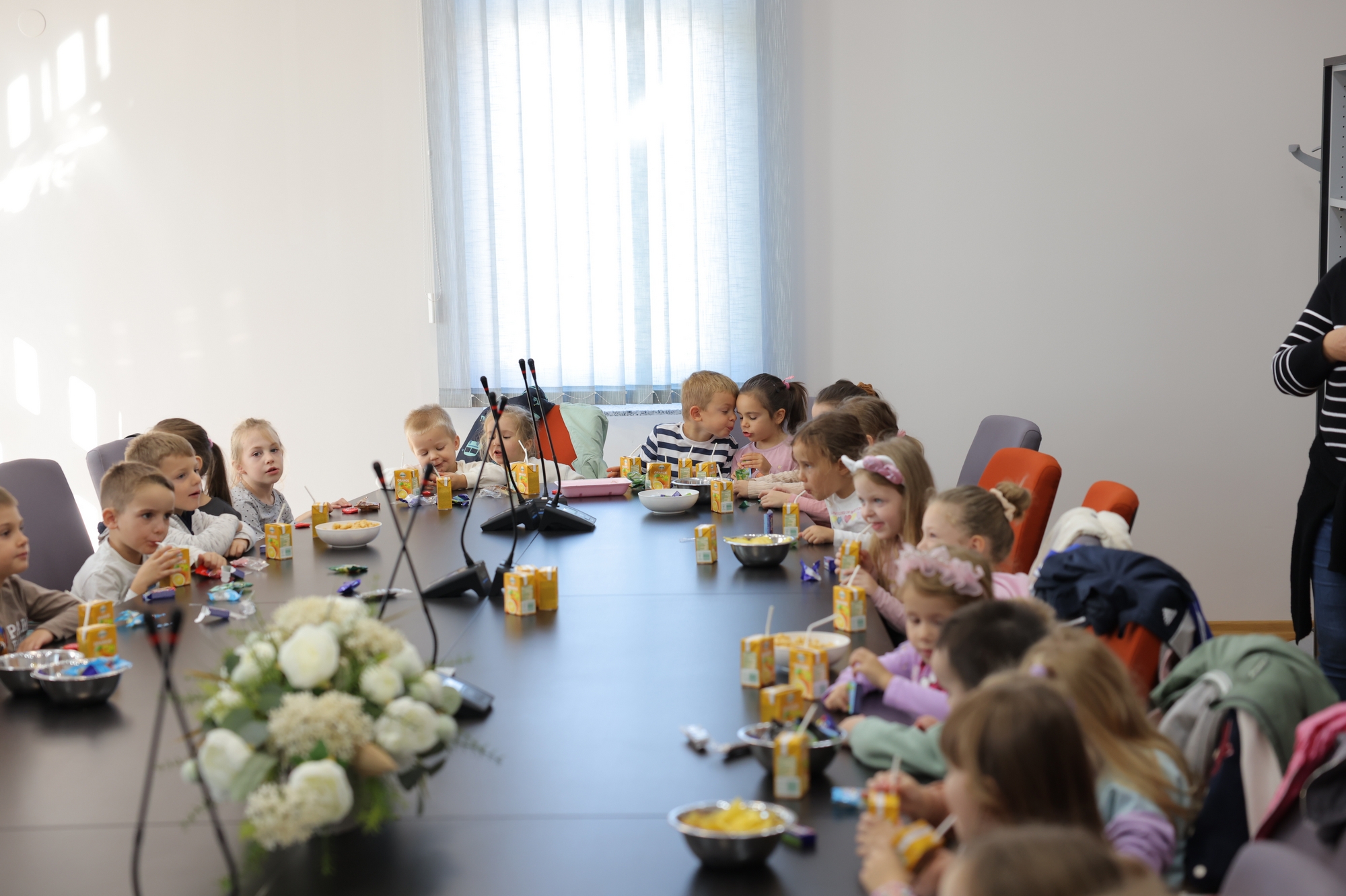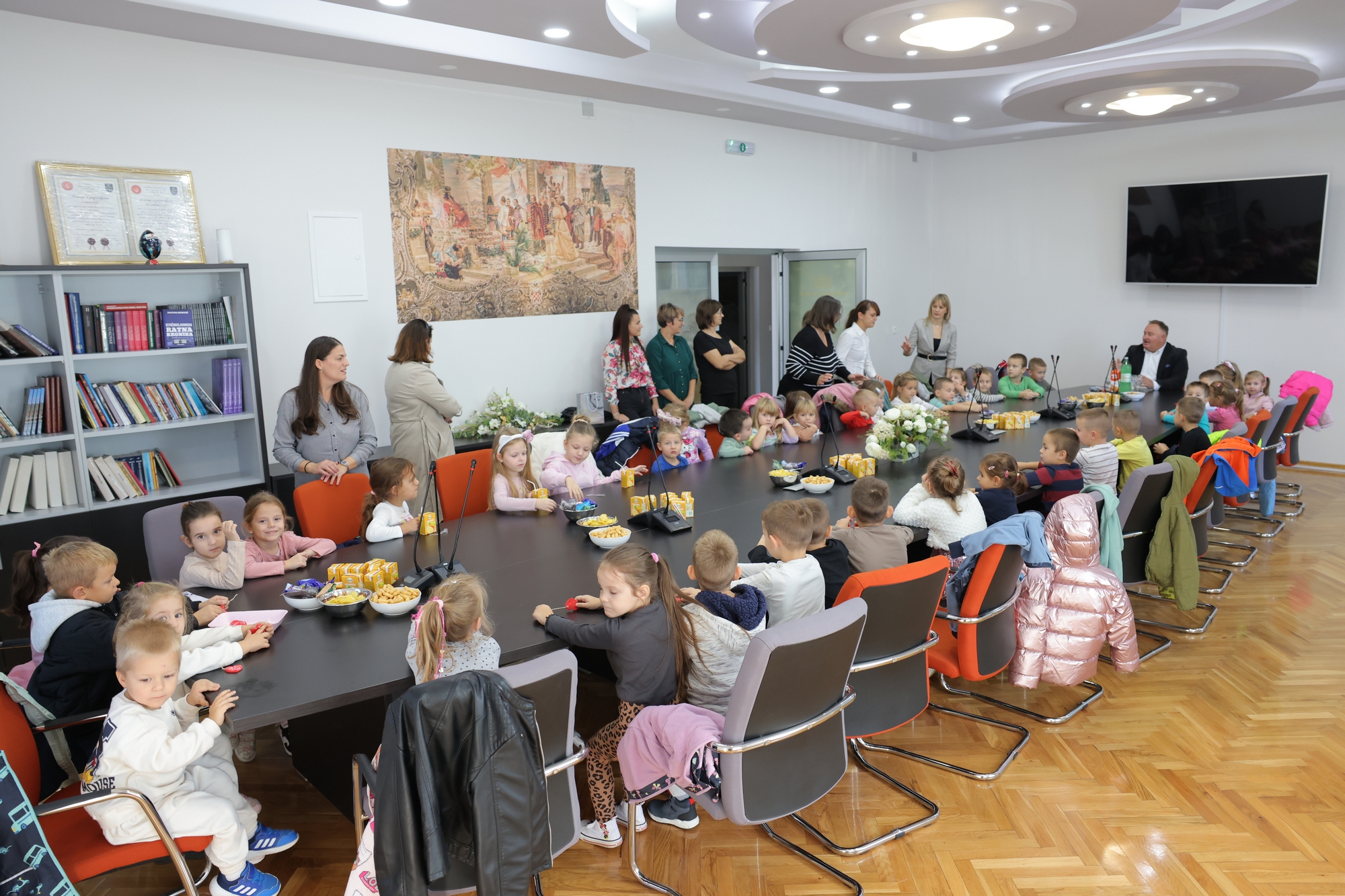 Povodom Dječjeg tjedna djeca iz Dječjeg vrtića Čarobni svijet u Rešetarima, u pratnji njihovih odgojiteljica, posjetila su Općinu Rešetari. Općinski načelnik Zlatko Aga čestitao je mališanima njihov tjedan te im je poželio srdačnu dobrodošlicu. Uz ugodno druženje i razgovor djeca su Općinskom načelniku i djelatnicima općine uručila prigodni dar. Djeca su otpjevala veselu pjesmicu i počastila se grickalicama i sokovima.