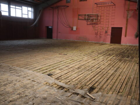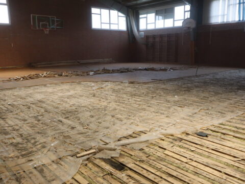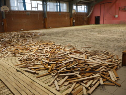 Početni radovi obuhvaćaju kompletno vađenje starog parketa i skidanje tribina, a potom i radovi na zaštiti temelja škole.