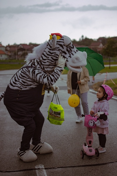 Iako je i kiša “popratila” ovu akciju i utjecala na njeno održavanje, hrabri mališani ipak su se okupili sa svojim roditeljima, a nagradila ih je “Zebra” maskota Hrvatskog auto kluba koja je svoj djeci podijelila poklone od HAK-a.