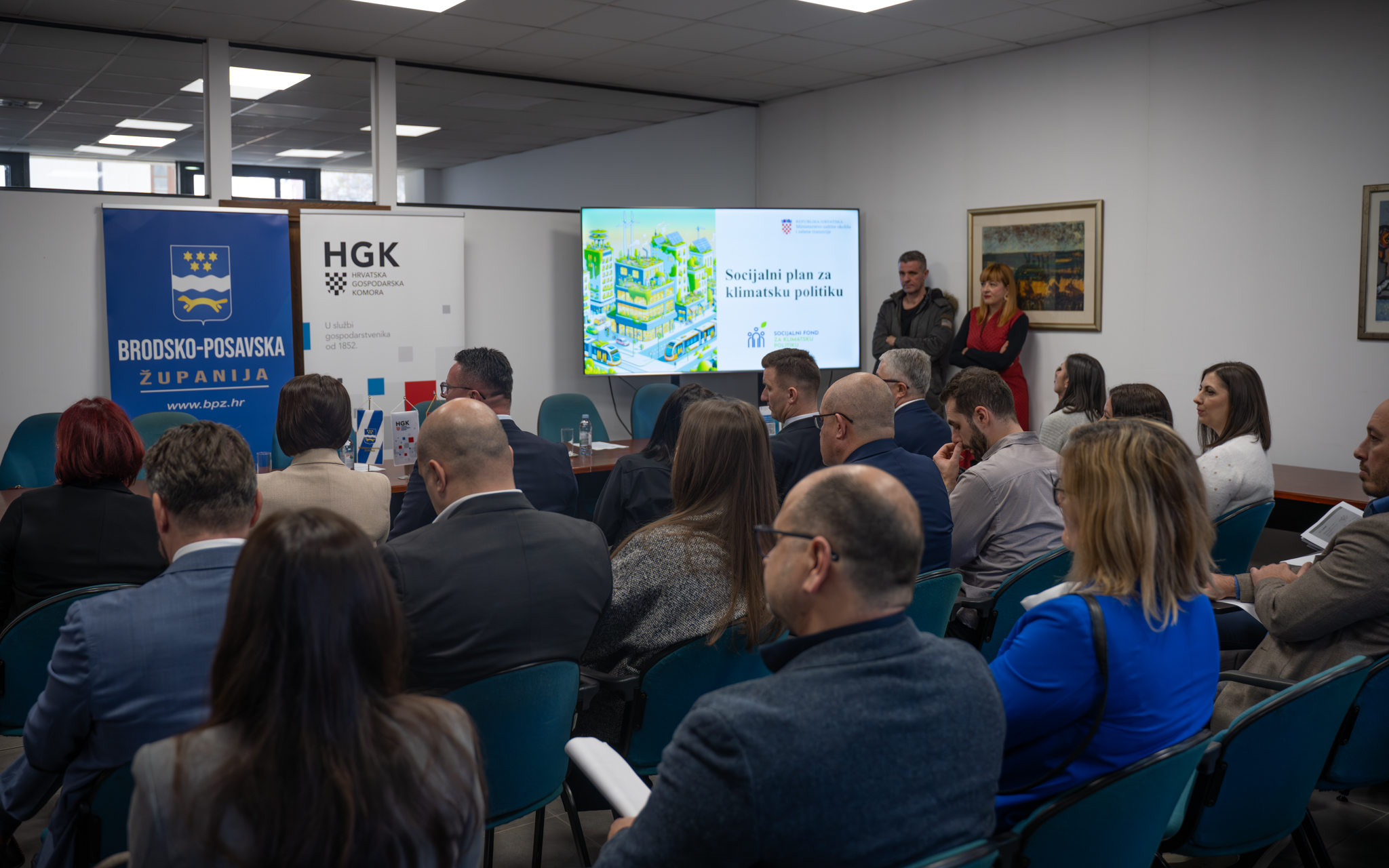 Cilj današnje panel-rasprave bio je okupiti predstavnike interesnih skupina koji će svojim prijedlozima doprinijeti oblikovanju mjera i ulaganja te tako osigurati pravednu, održivu i društveno uključivu provedbu zelene tranzicije. O novim ulaganjima raspravljali su predstavnici Ministarstva zaštite okoliša, Ministarstva mora, prometa i infrastrukture, Ministarstva prostornoga uređenja, graditeljstva i državne imovine te Ministarstva rada, mirovinskoga sustava, obitelji i socijalne politike. Uz predstavnike Fonda za zaštitu okoliša i energetsku učinkovitost, Središnje agencije za financiranje i ugovaranje, djelatnike brojnih županijskih ustanova, predstavnike udruga iz područja socijalne skrbi, Grada Slavonskoga Broda, raspravi je nazočio i saborski zastupnik i predsjednik Županijske skupštine Pero Ćosić.