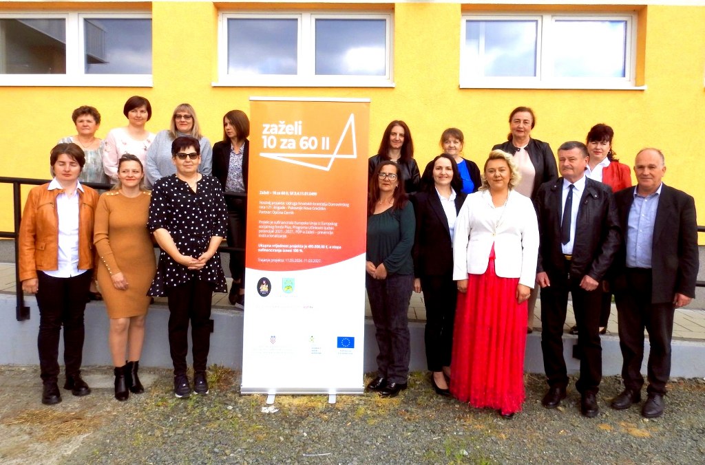 Opći cilj projekta “Zaželi – 10 za 60 II“ je povećanje socijalne uključenosti i prevencija institucionalizacije starijih osoba i osoba s invaliditetom, s posebnim naglaskom na HRVI, osiguravanjem dugotrajne skrbi. Specifični cilj projekta je pružanje usluge potpore i podrške u svakodnevnom životu za 60 starijih osoba i osoba s invaliditetom, s naglaskom na braniteljsku populaciju i osobe sa statusom HRVI, koju će kroz 33 mjeseca pružati ukupno 10 zaposlenih osoba na području zapadnog dijela Brodsko-posavske županije. Projekt će pozitivno utjecati na smanjivanje rizika od siromaštva ranjivih skupina, pripadnika i pripadnica ciljne skupine, te doprinijeti povećanju kvalitete života korisnika i korisnica.