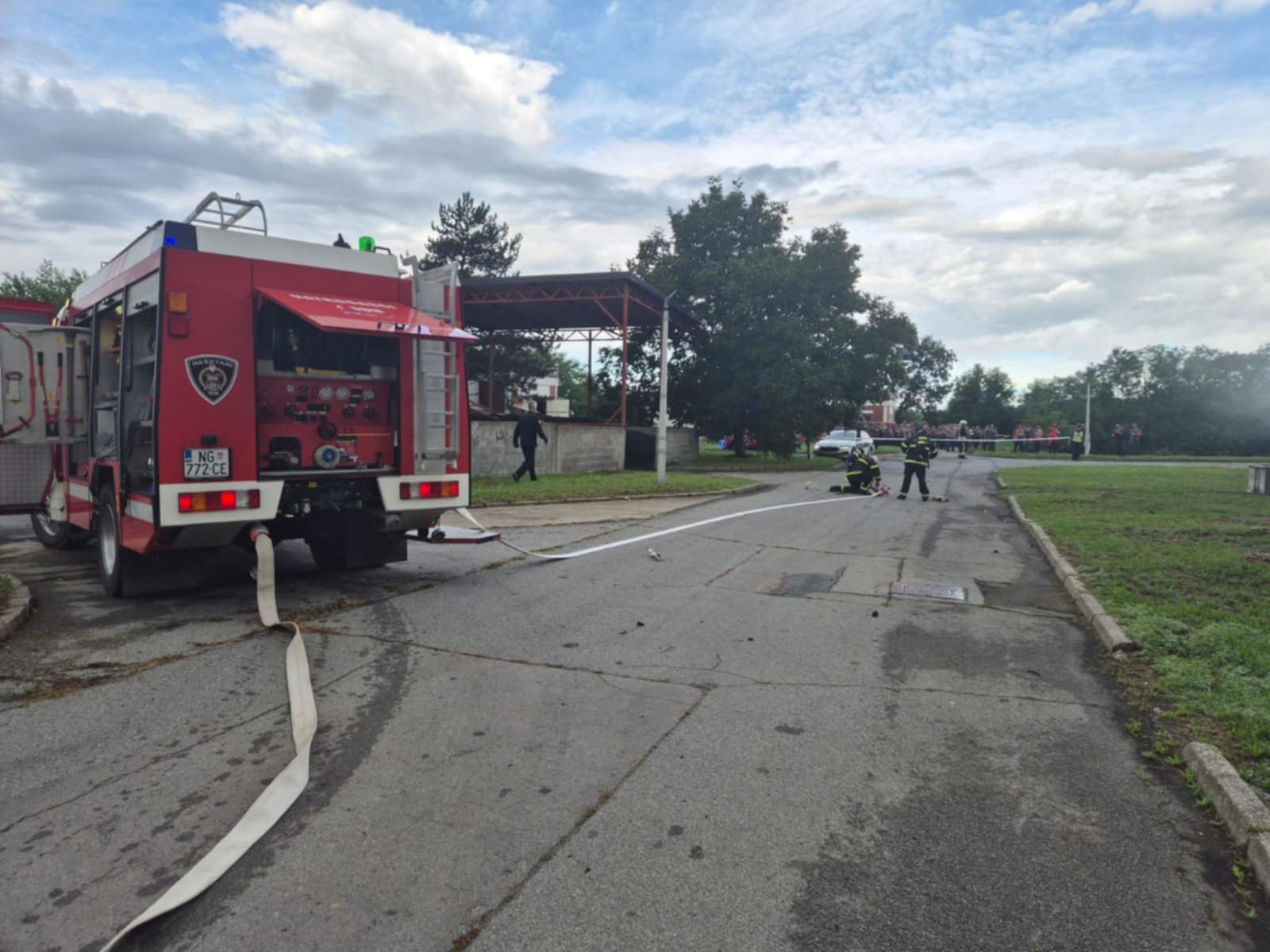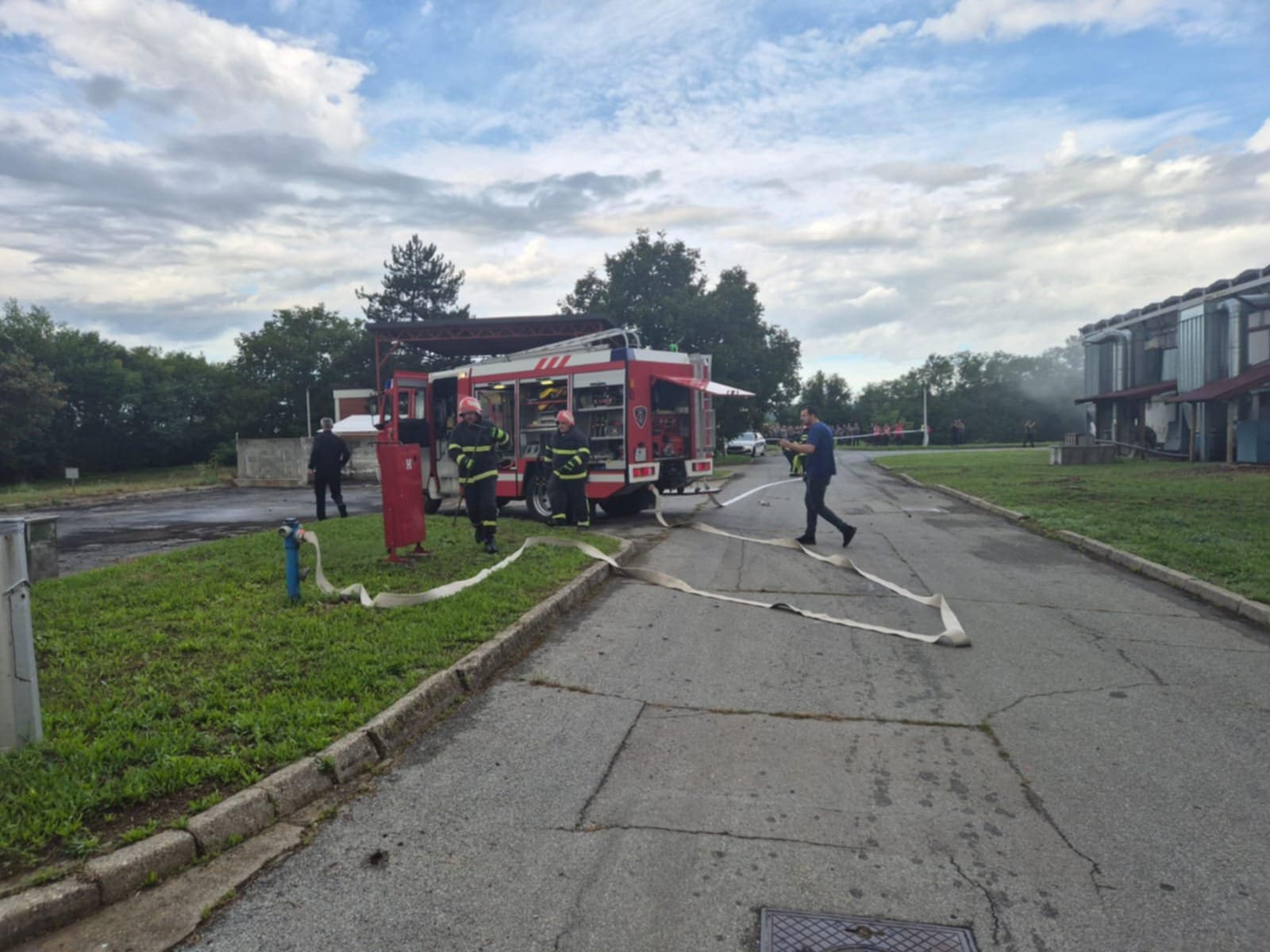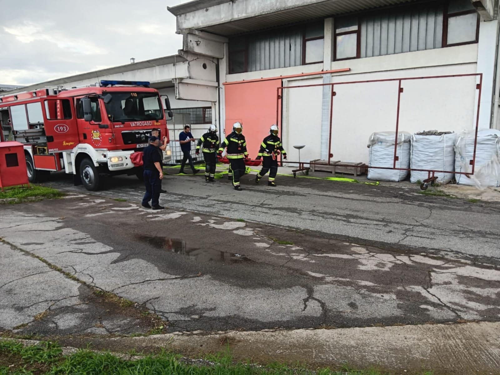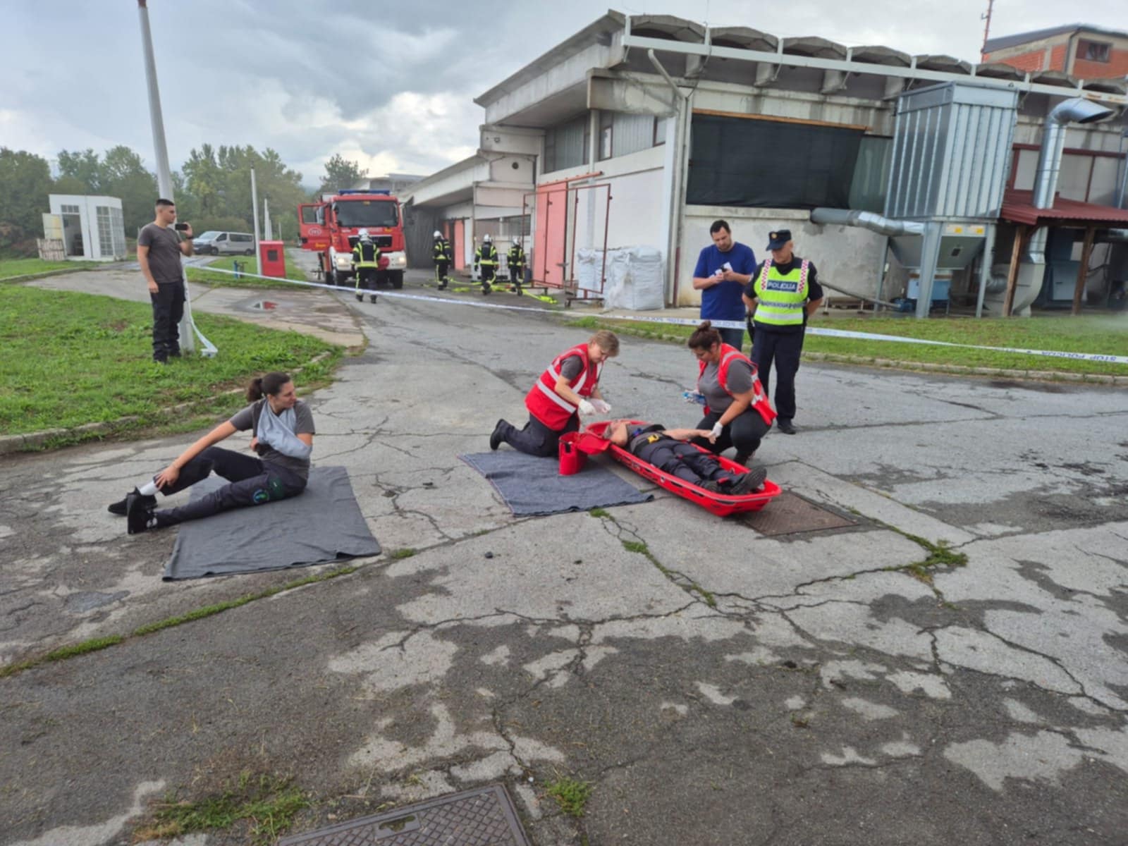 - Požar u brusioni kože te unutar same brusione uz pomoć GDCK NG simuliran je slučaj jedne ozlijeđene osobe koja nije bila pokretna, imala je otvorene prijelome, opekline I i II stupnja te se nagutala dima. Zadatak izvući unesrećenu osobu i predati je GDCK NG te nastaviti sa gašenjem požara, a zadatak su obavljali vatrogasci JVP Nova Gradiška.