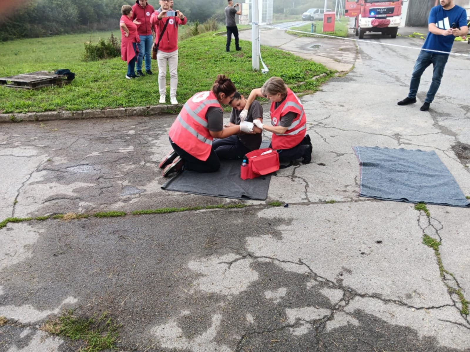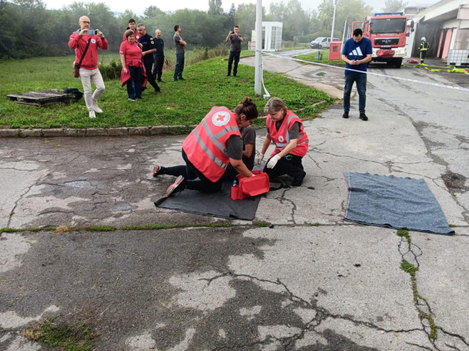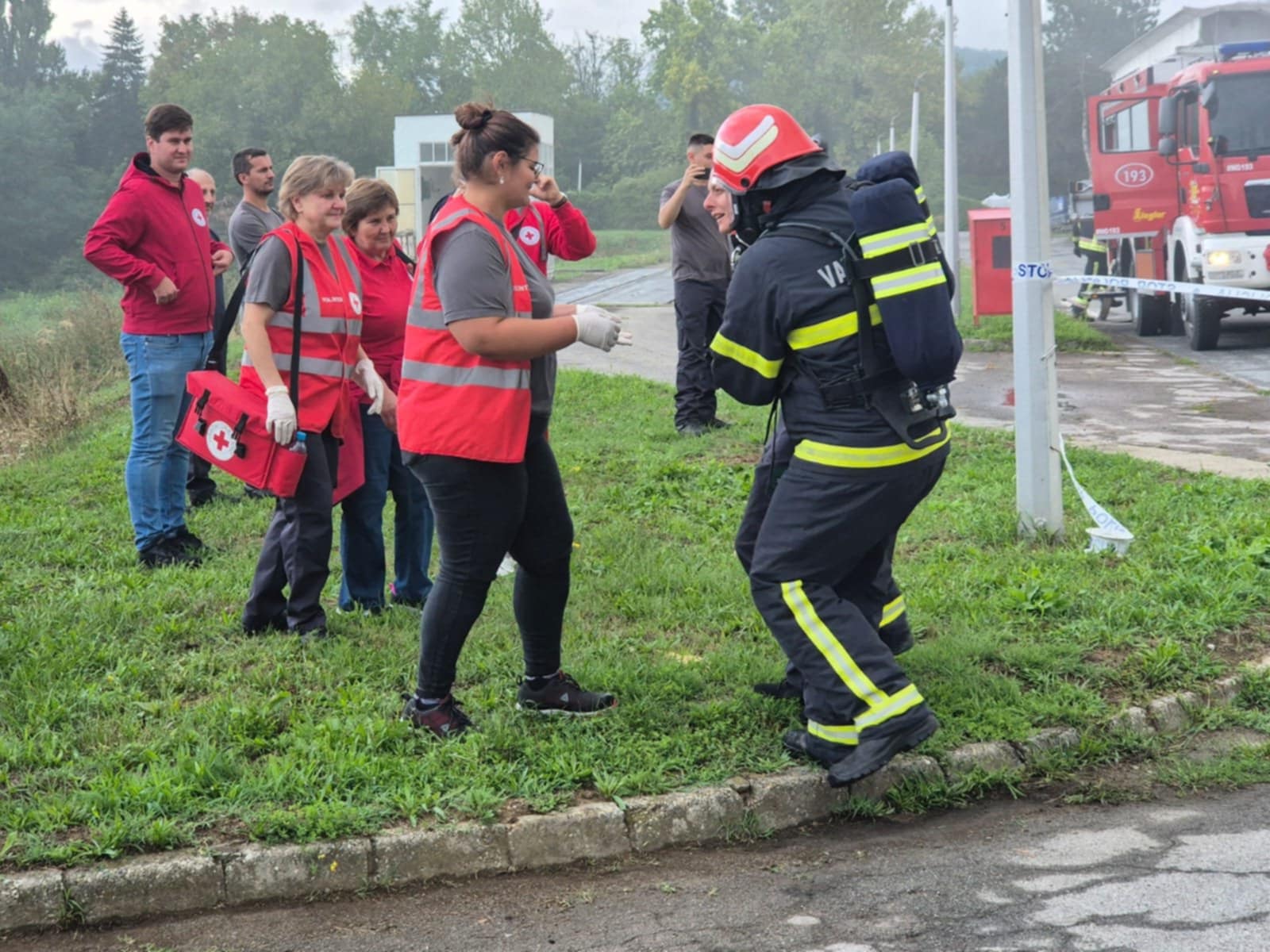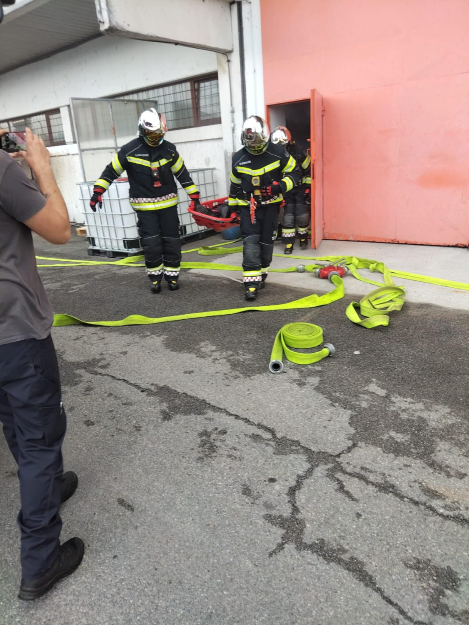 - Požar u brusioni kože te unutar same brusione uz pomoć GDCK NG simuliran je slučaj jedne ozlijeđene osobe koja nije bila pokretna, imala je otvorene prijelome, opekline I i II stupnja te se nagutala dima. Zadatak izvući unesrećenu osobu i predati je GDCK NG te nastaviti sa gašenjem požara, a zadatak su obavljali vatrogasci JVP Nova Gradiška.