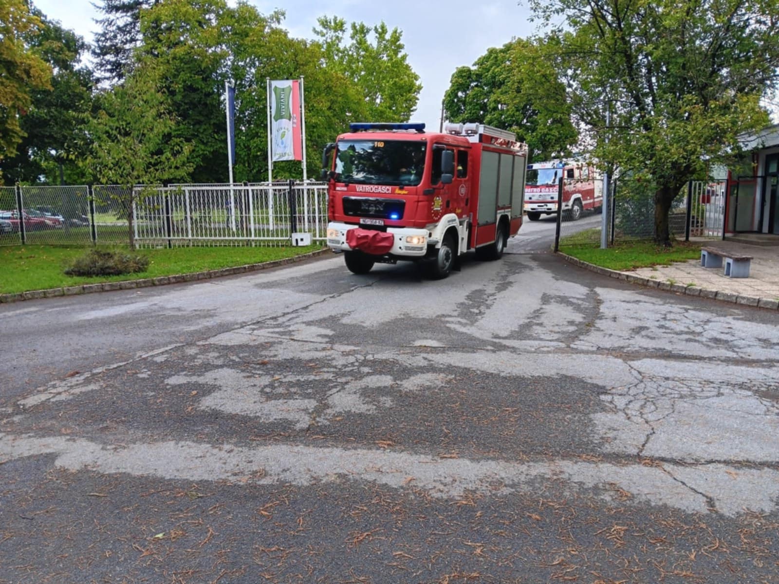 - Požar ventilacijskog sustava na vanjskom dijelu objekta koji je u neposrednoj blizini same brusione kože. Također i tu je bila jedna ozlijeđena osoba koja se zaglavila, bila je pokretna imala je otvoreni prijelom ruke i opekline I i II stupnja te se nagutala dima. Zadatak je bio izvući osobu predati je GDCK NG i nastaviti sa gašenjem požara. Zadatak su obavili operativni vatrogasci DVD-a Rešetari.