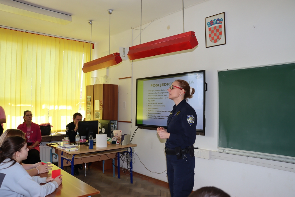 „Iako su i dalje prisutni fizički oblici nasilja, danas imamo nove izazove. Preventivni rad usmjeravamo upravo na digitalno okruženje. Ako se nasilje dogodi izvan škole, roditelji se trebaju obratiti policiji. Mi ćemo po potrebi uključiti školu. Ako se nasilje događa u školi, tada se najprije obavještava razrednik koji uključuje policiju“, pojasnila je. Upozorila je i na opasnosti nekontroliranog korištenja mobilnih uređaja.