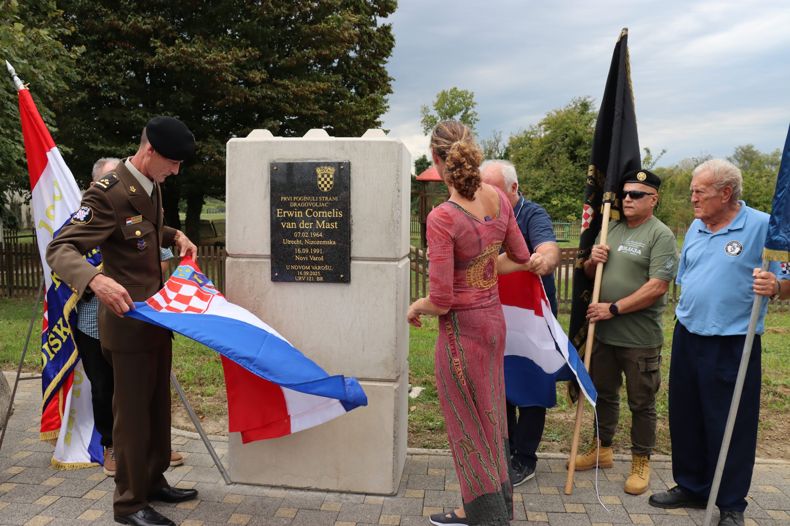 Foto: Raymond van der Linden otkriva spomen ploču prvom poginulom stranom dragovoljcu Domovinskog rata Erwinu Cornelisu van der Mastu u Novoj Varoši čije je postavljanje inicirao. (rujan 2025.)