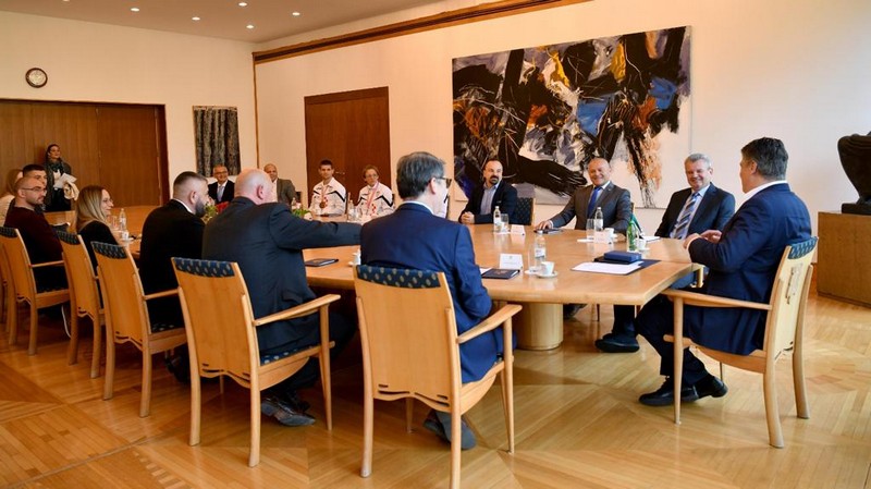 Uz predsjednika Milanovića na sastanku su bili posebni savjetnik Predsjednika Republike za veterane Domovinskog rata Marijan Mareković i povjerenik Predsjednika Republike za sport izv. prof. dr. sc. Željko Jovanović.