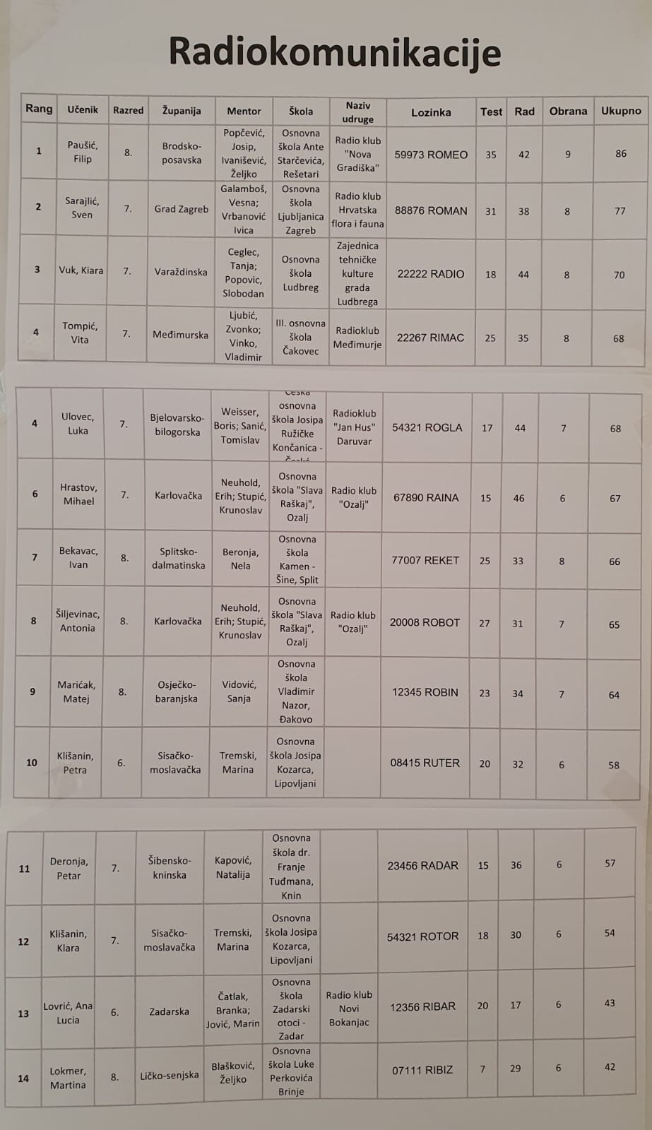 Na državnoj razini 64.natjecanja mladih tehničara Republike Hrvatske održanog 2.-4. svibnja u Primoštenu, član radio kluba „Nova Gradiška“ i učenik 8. razreda osnovne škole Ante Starčevića Rešetari Filip Paušić u kategoriji „Radiokomunikacije“ osvojio je 1.mjesto.