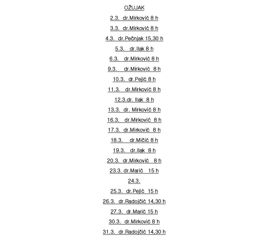 Grad Nova Gradiška obavještava građane da je Upravni odjel za zdravstvo, socijalnu skrb i hrvatske branitelje Brodsko-posavske županije dostavio preliminarne podatke o radnom vremenu pedijatrijske ordinacije u Novoj Gradiški za ožujak 2026. godine.