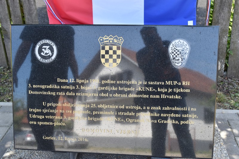 -“12. lipnja 1991. ovdje u Goricama 110 pripadnika policijske postaje Nova Gradiška obuklo je šarenu odoru i formiralo 3. satniju 3. bojne 3. gardijske brigade kasnije pod nazivom „Kune”. Djelovali smo i branili ovo područje od banjalučkog korpusa koji je prešao rijeku Savu. Branili smo i zaustavili neprijatelja ovdje na Goricama, a to je dominantna točka na kojoj se branio i obranio naš grad Nova Gradiška.