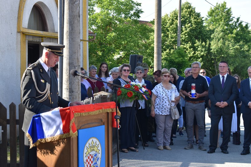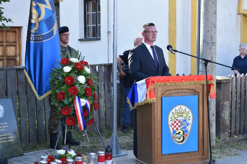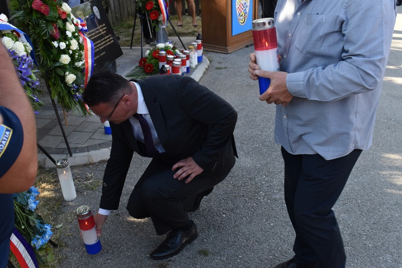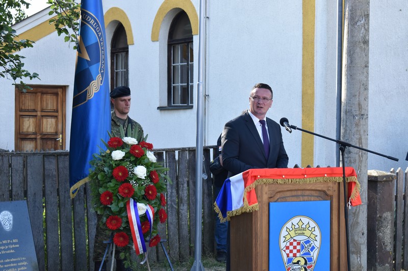 -“Mi smo ovdje svake godine pomiješanih osjećaja, sreće, tuge i ponosa. Sretni smo jer živimo u najljepšoj domovini na svijetu, Hrvatskoj i što naša djeca s osmijehom trče kroz svoje djetinjstvo. Tužni smo jer je puno majki, očeva, supruga i djece zaplakalo za onima kojih više nema, a svoje su živote ugradili u temelje naše domovine. Ponosni smo zato jer smo ih imali i zato što ih nećemo zaboraviti. Ovaj spomenik neće biti samo hladna ploča s nekim imenima, jer ta imena su duboko urezana u naša srca.” – izjavio je župan Danijel Marušić