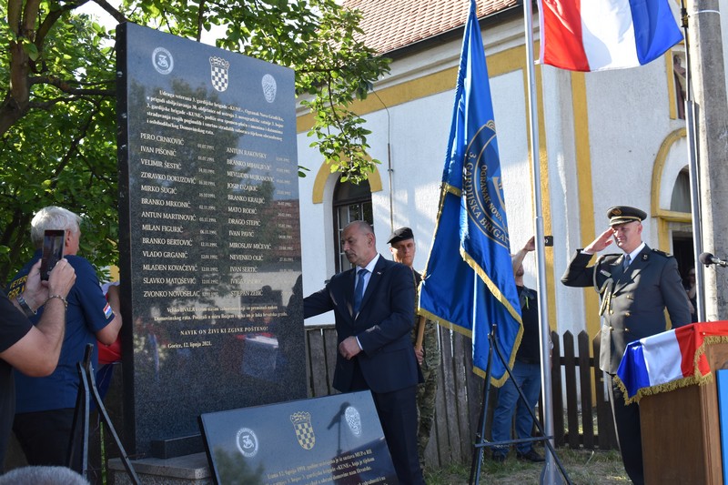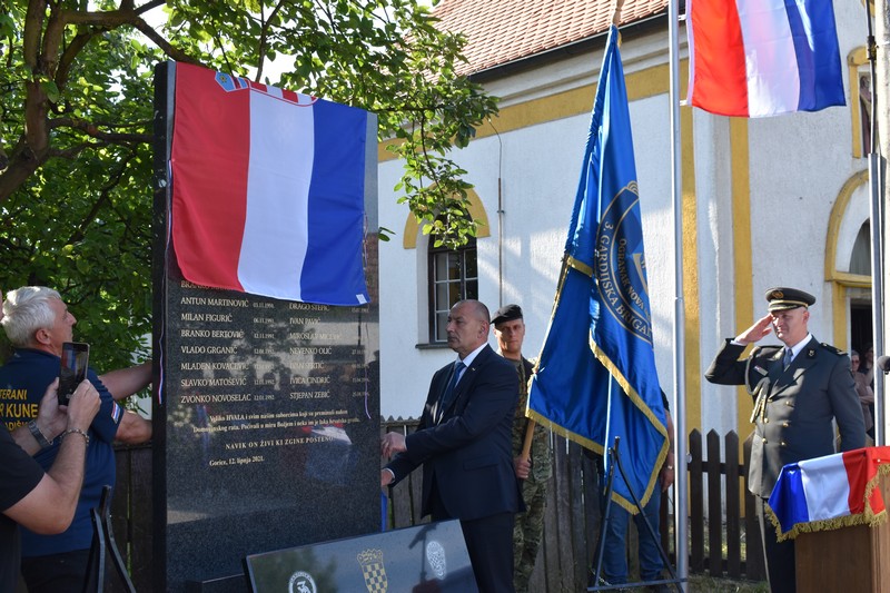 -“Veliki je ovo dan za Gorice, ali i za Republiku Hrvatske. Svako mjesto gdje se postavi u trajni spomen i sjećanje spomen obilježje u znak zahvale za žrtvu hrabrih hrvatskih branitelja trajno ostaje u karti i mozaiku koji ispisuje pobjedu, jednu jedinstvenu koja se zove slobodna Hrvatska.” Ovo spomen obilježje s 26 imena hrvatskih branitelja koji su život položili da bismo mi mogli živjeti, a poglavito da bi se ovdje mogla stvarati budućnost, da bi stvorili perspektivu za naše mlade naraštaje.