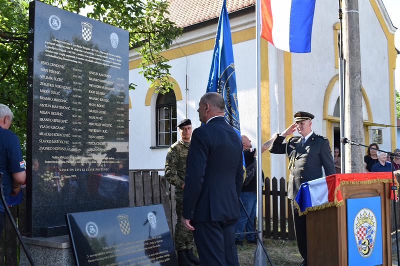 -“Čast mi je ponos stajati danas ovdje pred vama, jer upravo na današnji dan prije 30. godina osnovali smo i formirali 3. bojnu 3. gardijske brigade s 1. i 2. satnijom u Slavonskom Brodu, s 3. satnijom u Novoj gradiški i kasnije s 4. satnijom u Đakovu. U bibliji piše u početku bijaše riječ- Hrvatska danas nije samo riječ, već je zbir suza, patnji i čežnji hrvatskog naroda za slobodom, stvorena isključivo borbom hrvatskih branitelja, naših prijatelja i suboraca koji su zajedno sn nama rame uz rame otišli na krvavi, ali pobjedonosni put Hrvatske borbe za slobodom i na tom putu dali svoje mlade živote na oltar domovine.” – rekao je u obraćanju zapovjednik 3. bojne 3. gardijske brigade general-bojnik u miru, Krešimir Šipoš