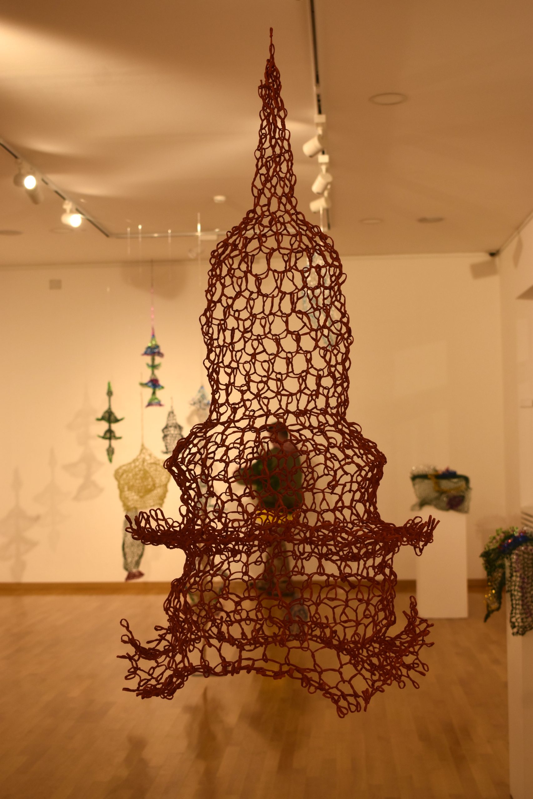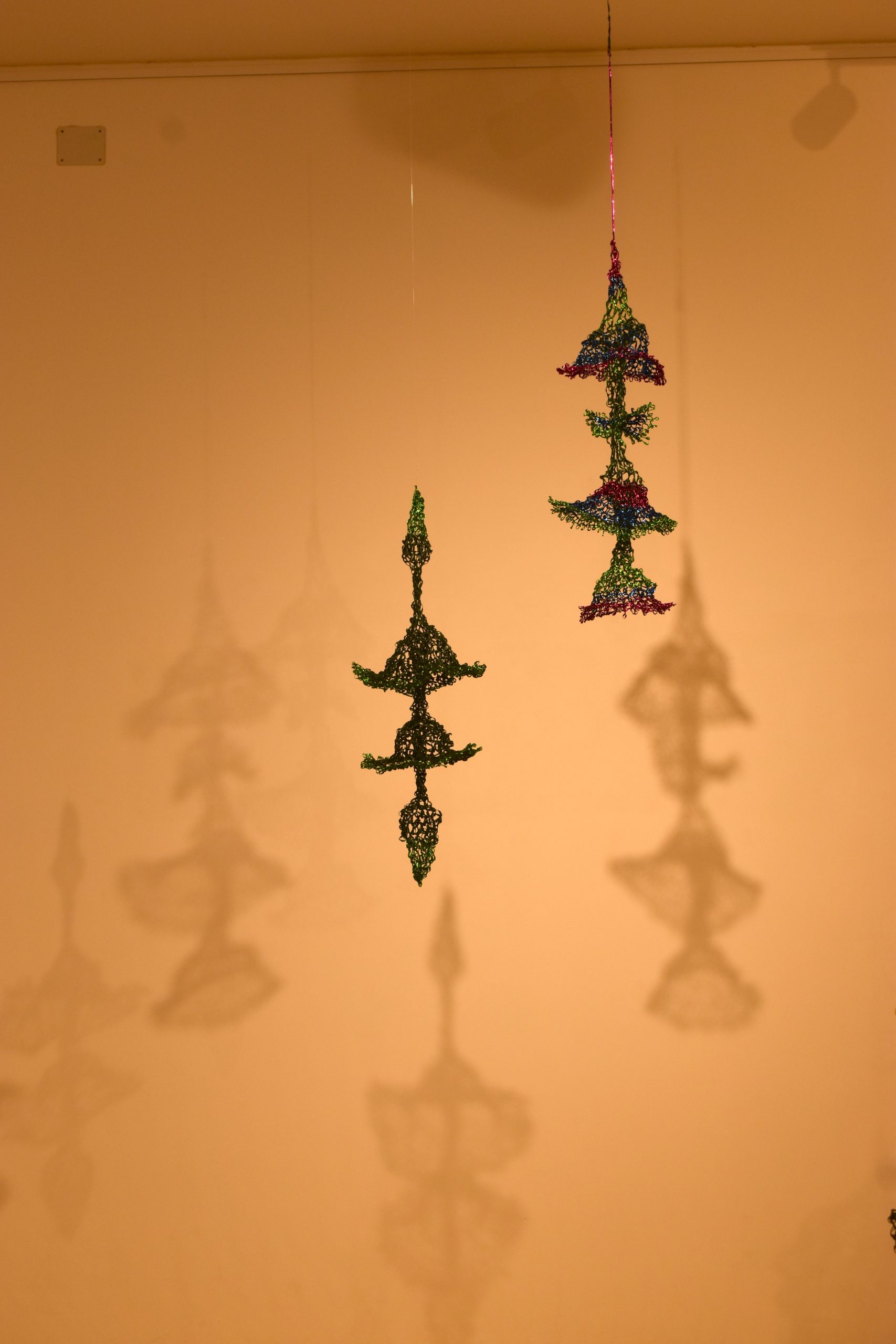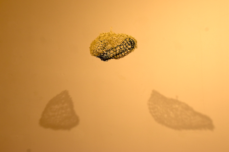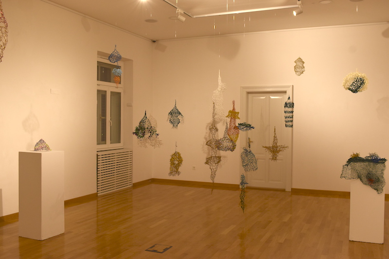 “To je bio moj diplomski rad koji sam nastavila istraživati. Radi se o žici koja je presvučena u različite materijale, poput papira i plastike i od nje radim posebnom tehnikom, koja nije obično pletenje nego svaku očicu fiksiram zasebno stvarajući oblike koji vise ili stoje u prostoru, odnosno skulpture.” – objašnjava.