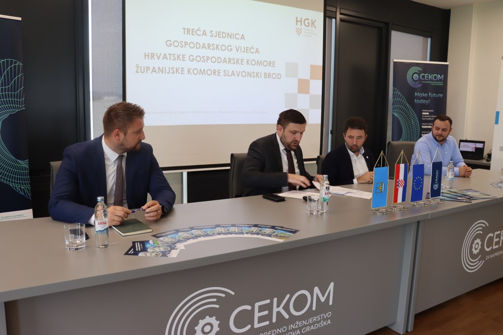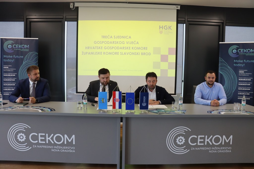 – “Ugostili smo sjednicu Gospodarskog vijeća HGK Brodsko – posavske županije čiji smo i mi članovi i drago nam je da je HGK Slavonski Brod prepoznala ovaj prostor i zapadni dio Brodsko – posavske županije kao mjesto gdje će se održavati ovako važna sjednica. Prilika je to da im pokažemo da u Novoj Gradiški raspolažemo s jednim modernim i lijepim znanstveno istraživačkim prostorom, ne samo zgradom, već i strojevima koje ćemo obići, te da im pokažemo što mi ovdje radimo ovdje i kako doprinosimo našem gospodarstvu.” – naveo je direktor CEKOM-a Adam Đanić