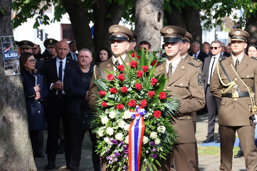 Na spomen obilježje prvi vijenac položilo je izaslanstvo obitelji hrvatskih branitelja poginulih u „Bljesku” i umrlih od posljedica ranjavanja, ratni zapovjednici postrojbi koje su sudjelovali u ovoj akciji te predstavnici udruga iz Domovinskog rata, potom državni vrh te izaslanstvo općina, gradova i županija.