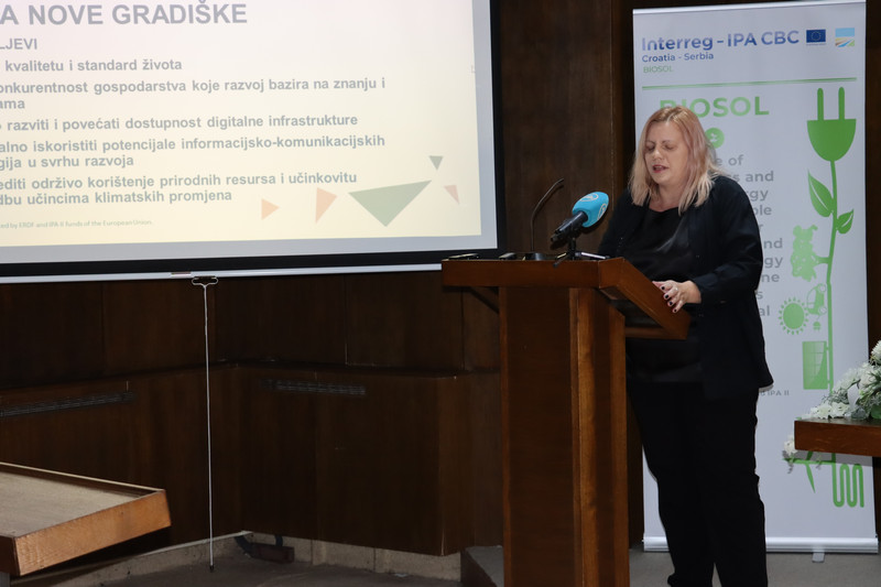 Projekt “BIOSOL” su prezentirale i predstavile Ivana Mićović, projektna asistentica u ime Grada Šapca, Maja Savi, projektna koordinatorica u ime Grada Nova Gradiška i Roberta Prankić, projektna asistentica u ime LAG-a Zapadna Slavonija. Prezentaciju energetske strategije Grada Nova Gradiška vodila je Gordana Šimić