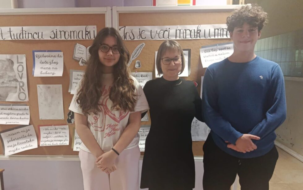 Veliki uspjeh postigao je učenik 8.d razreda Bruno Janković, koji je osvojio 1. mjesto i tako postao županijski prvak u Natjecanju iz Engleskoga jezika. Odličan rezultat ostvarila je i učenica Tamara Javorović iz 8.a razreda, koja je osvojila 3. mjesto. Mentorica uspješnih učenika je nastavnica Kristina Abramović, koja ih je svojim stručnim radom i podrškom pripremala za natjecanje.