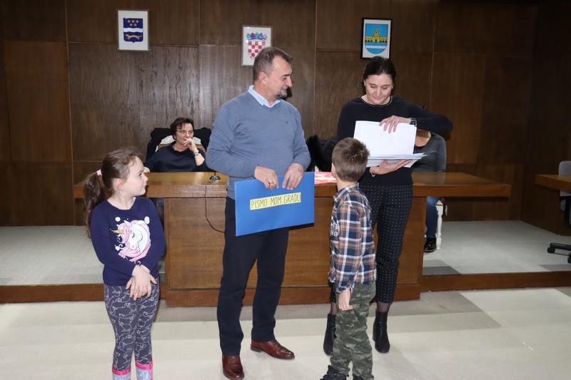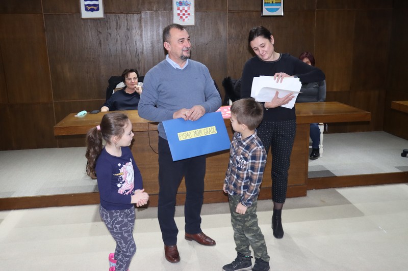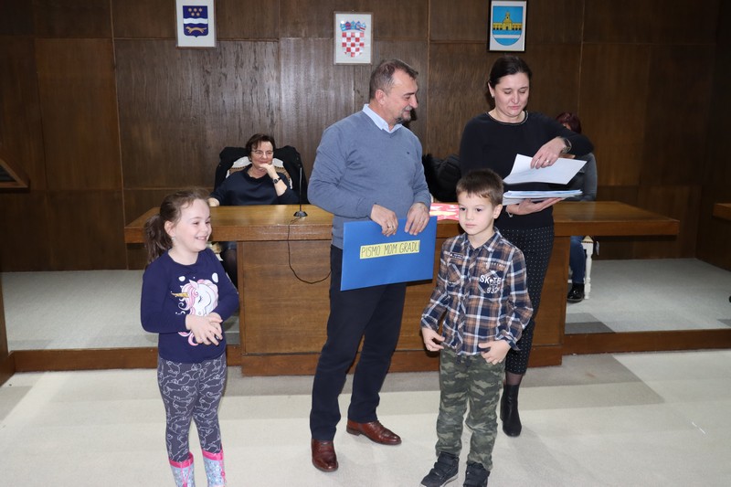 Prije svega, djeca iz skupine ”Autići” i ”Balončići”, odnosno, iz vrtića ”Maslačak” i ”Radost” počastili su Grad prekrasnim pjesmicama. Nakon toga, predstavili su svoje vrlo kreativne čestitke i likovne uratke koje su zadnjih nekoliko tjedana izrađivali sa svojim odgajateljicama i uručili su ih zamjeniku Borislavu Vidošiću.