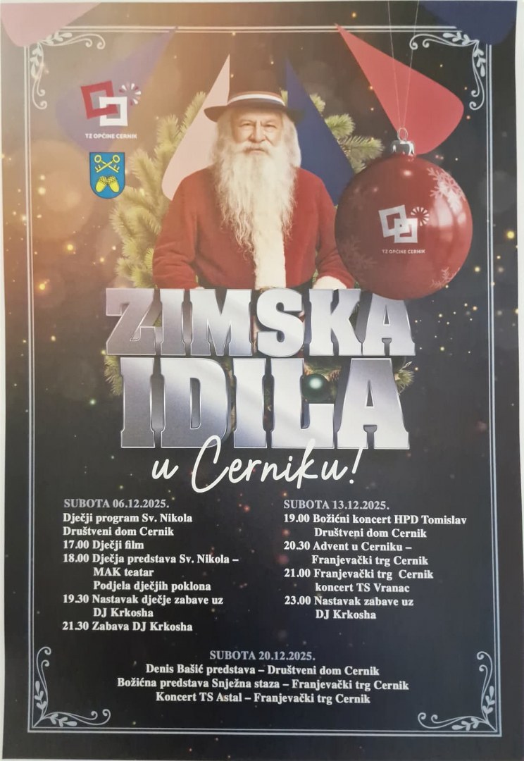 Direktor TZ Općine Cernik Ivan Ivanović istaknuo je kako su dvije destinacije udaljene samo 2600 metara, što posjetiteljima omogućuje da vrlo lako posjete obje manifestacije. Advent u Cerniku održava se od 2018. godine, a ove godine donosi bogat i prošireni program u sklopu manifestacije „Zimska idila“, i to kroz tri adventske subote: