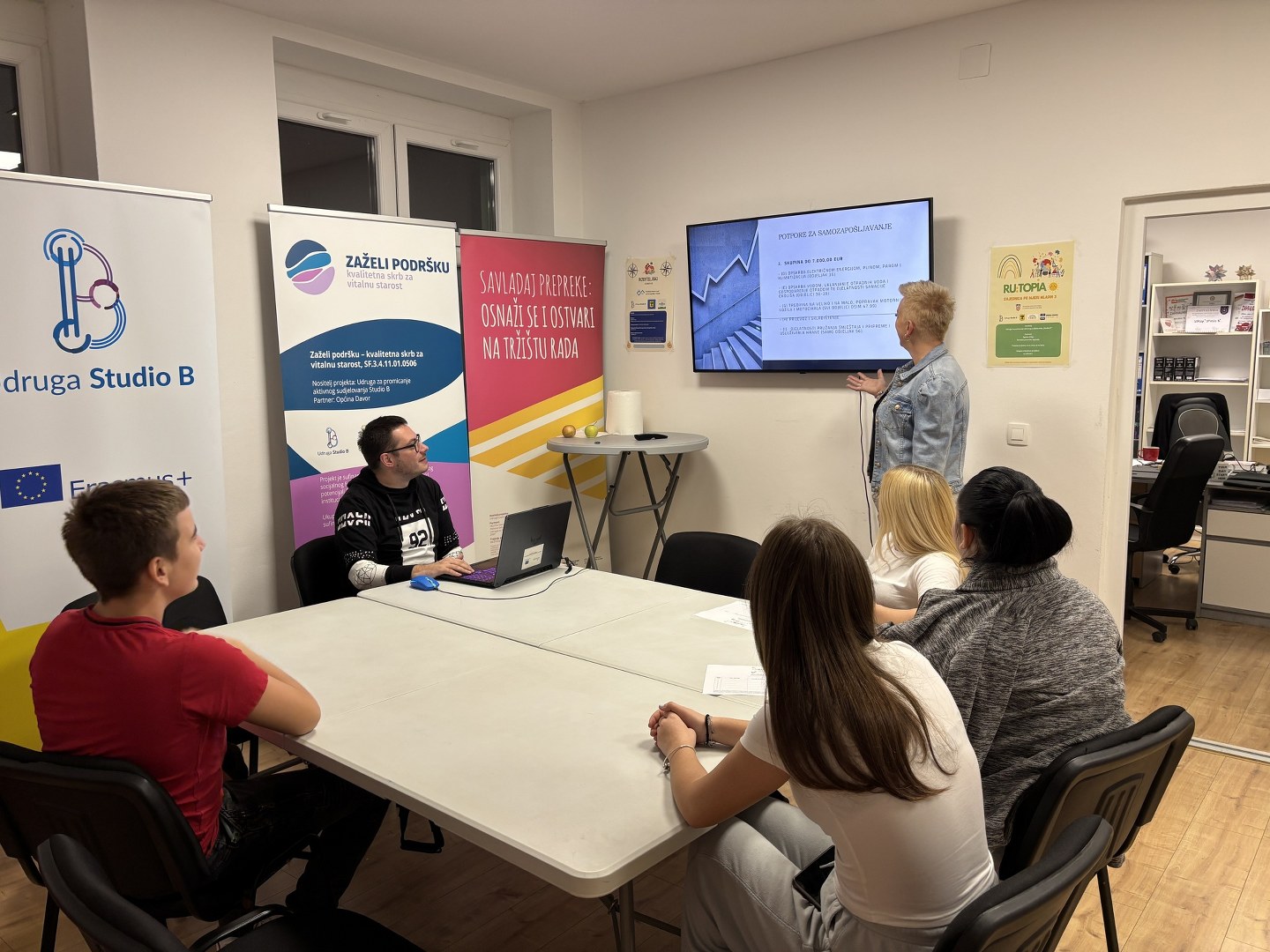 Udruga Studio B od početka siječnja provodila je jednogodišnji projekt pod nazivom „RU:TOPIA – zajednica po mjeri mladih 3“. Projekt je podržao Središnji državni ured za demografiju i mlade kroz natječaj “Poziv za prijavu projekata usmjerenih mladima za financijsku potporu iz raspoloživih sredstava dijela prihoda od igara na sreću i Državnog proračuna za 2023. godinu” u iznosu od 18.000,00 €. u sklopu P3. Mladi u ruralnim sredinama. Partneri u provedbi projekta su Općina Vrbje i Brodsko-posavska županija. Projekt traje do 31. prosinca 2024. Cilj projekta je bio ostvariti uvjete koji će omogućiti mladima iz ruralnih sredina Brodsko-posavske županije, s naglaskom na općinu Vrbje, ispunjavanje svojih punih potencijala, te podizanje njihove kvalitete života. Ciljane skupine ovog projekta su bili 70 mladih iz općine Vrbje koji pripadaju sljedećim podgrupama (opća populacija, NEET, srednjoškolci, mlade majke, mladi s ekonomskim i obrazovnim preprekama) te 200 mladih s područja Brodsko – posavske županije u dobi od 15 do 30 godina, koji žive u ruralnim sredinama.